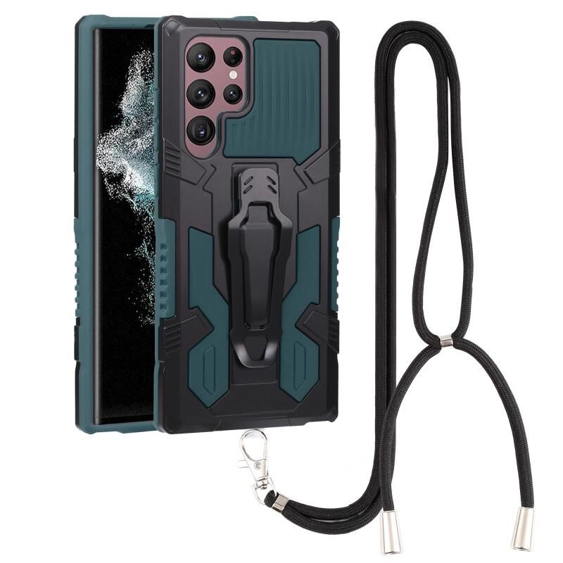 Για Samsung Galaxy S22 Ultra 5G Lanyard Mecha θωράκιση Kickstand PC + TPU τηλέφωνο υπόθεση (πράσινο)