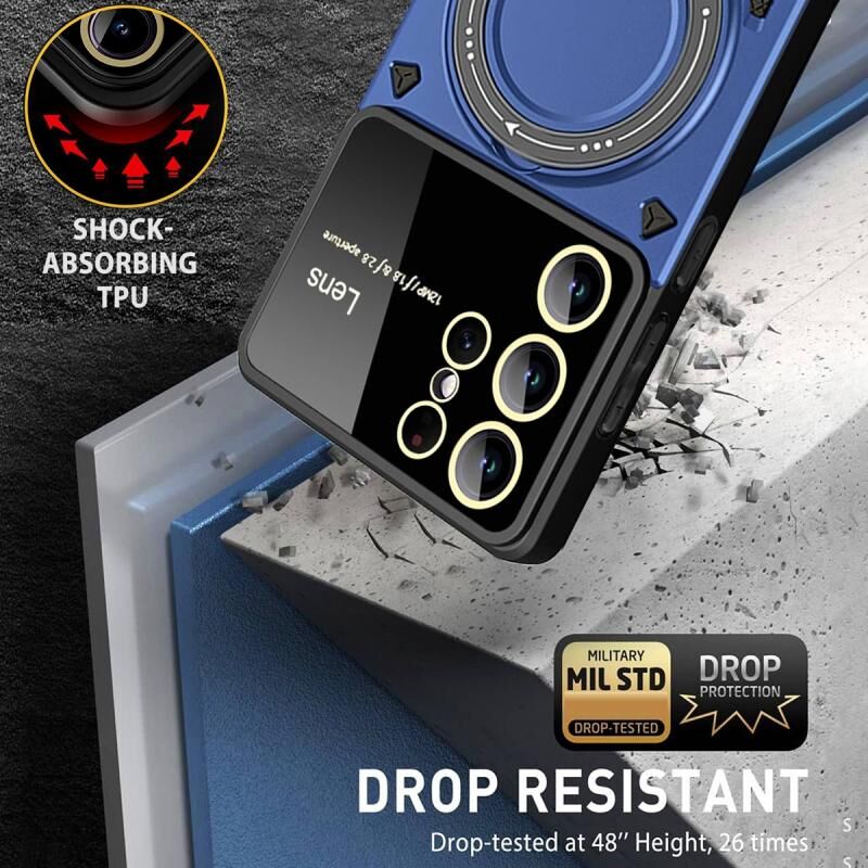 For Samsung Galaxy S22 Ultra 5G Large Window MagSafe Holder Phone Case(Red)