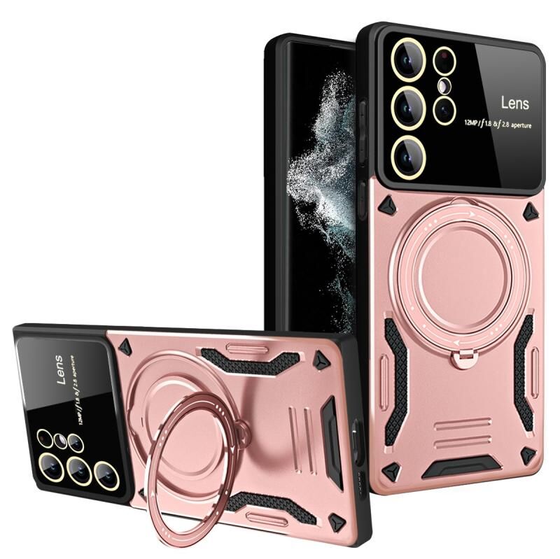For Samsung Galaxy S22 Ultra 5G Large Window MagSafe Holder Phone Case(Rose Gold)