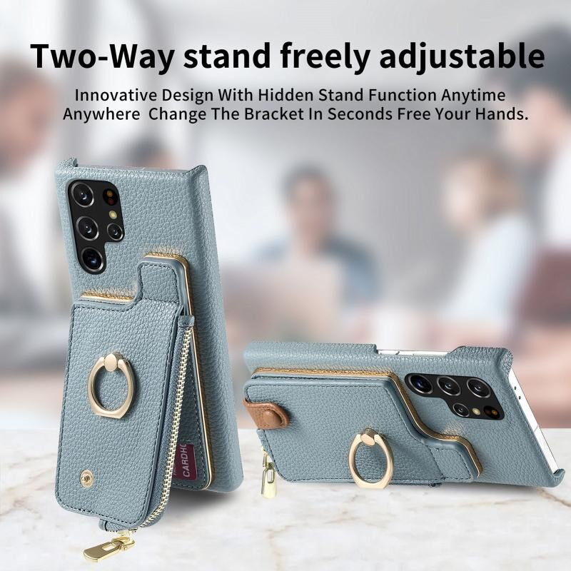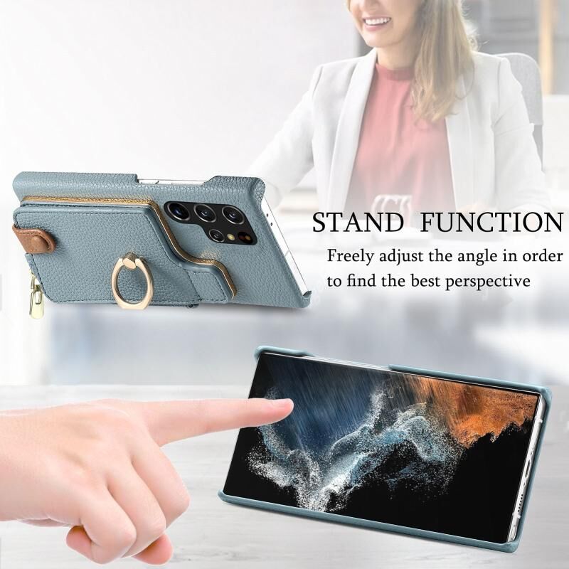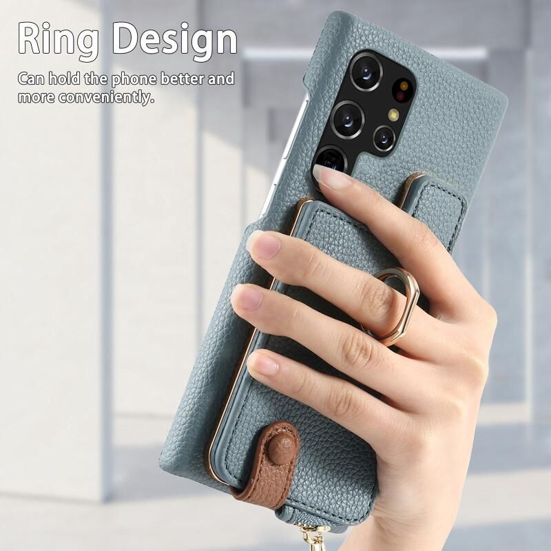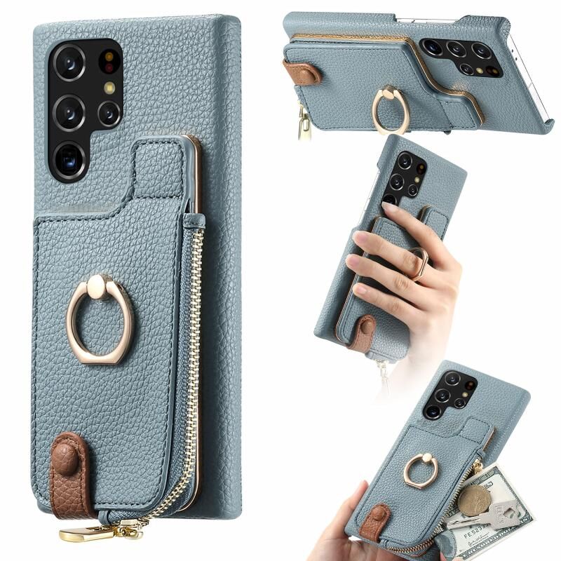 Για Samsung Galaxy S22 Ultra 5G Litchi δέρμα λάδι Edge δαχτυλίδι φερμουάρ πορτοφόλι πίσω θήκη τηλεφώνου (μπλε)