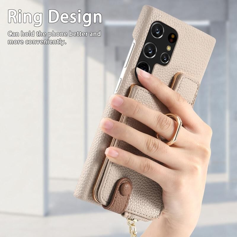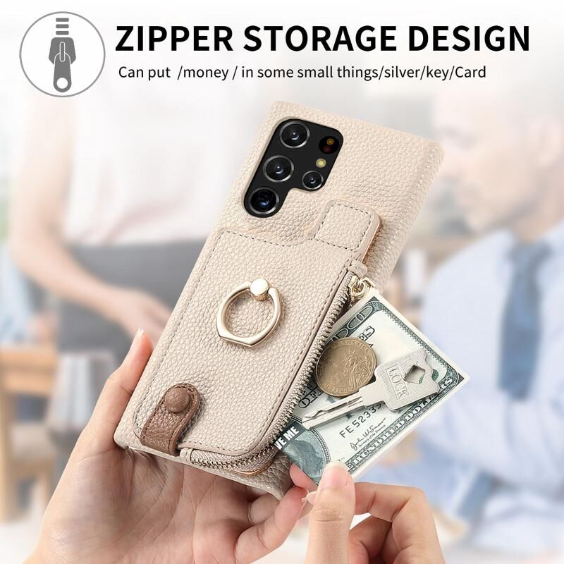 Για Samsung Galaxy S22 Ultra 5G Litchi δέρμα λάδι Edge δαχτυλίδι φερμουάρ πορτοφόλι πίσω θήκη τηλεφώνου (λευκό)