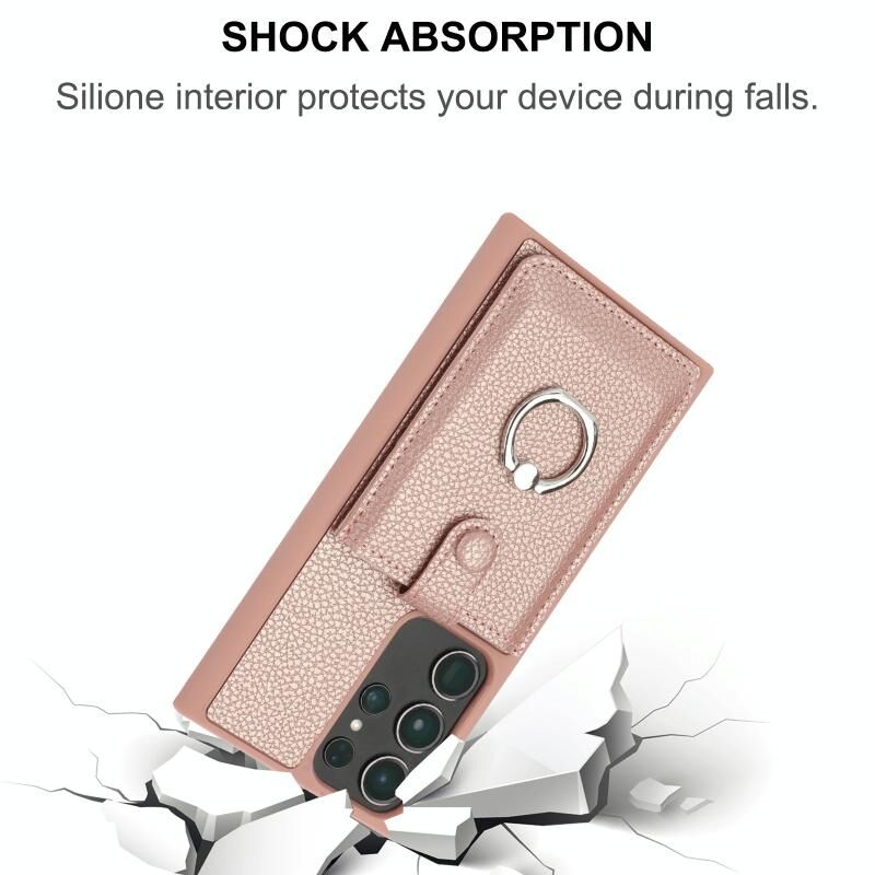 Για Samsung Galaxy S22 Ultra 5G Litchi Υφή Σχεδίαση κάρτα τσάντα τσάντα δαχτυλίδι κάτοχος υπόθεση τηλεφώνου (μπλε)