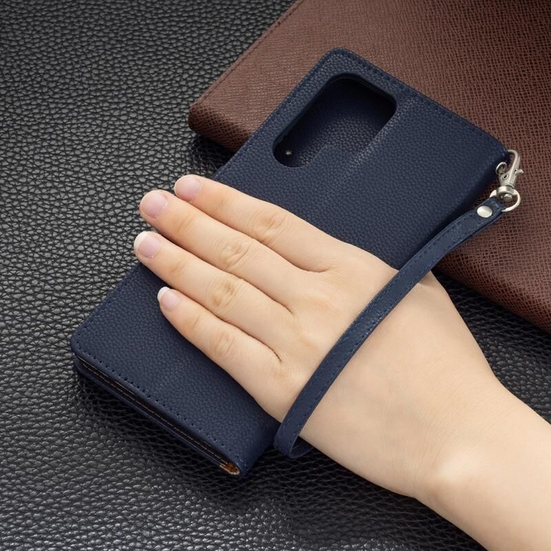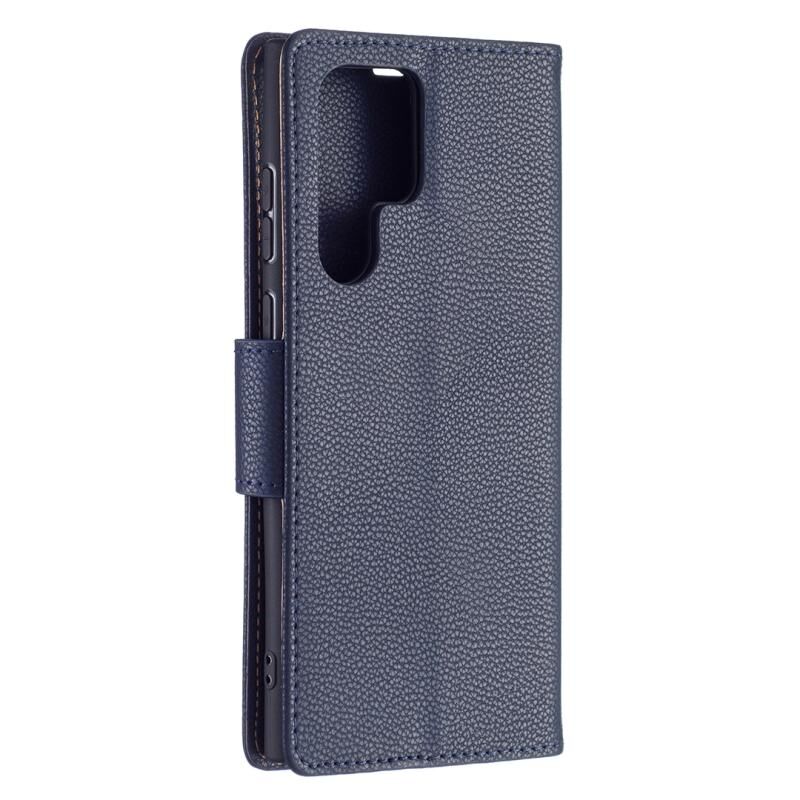 Για Samsung Galaxy S22 Ultra 5G Litchi υφή καθαρό χρώμα οριζόντια Flip δερμάτινη θήκη τηλεφώνου με θήκη & υποδοχές για κάρτες & πορτοφόλι & κορδόνι (σκούρο μπλε)
