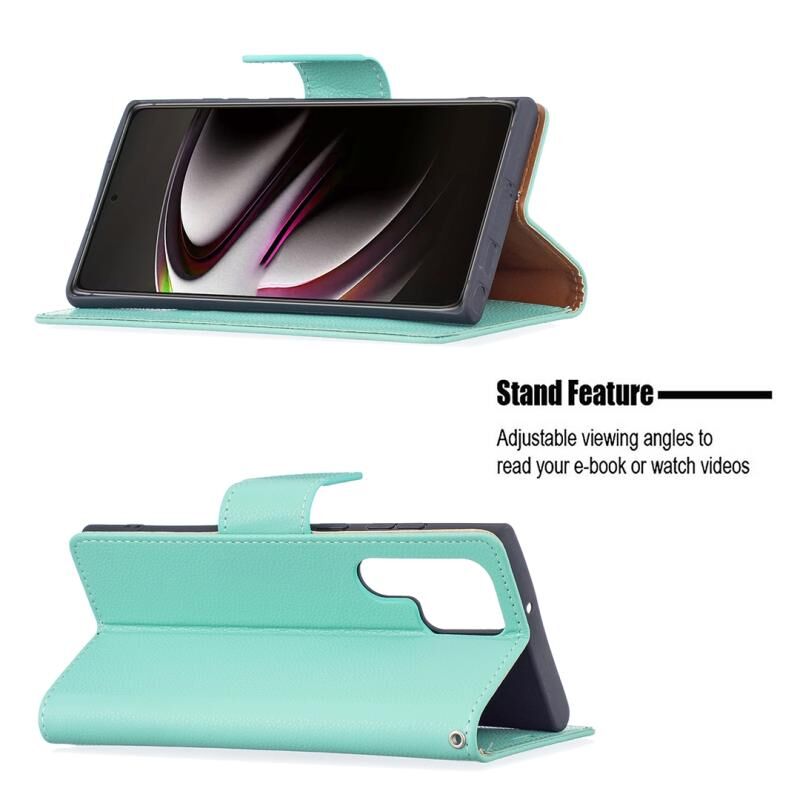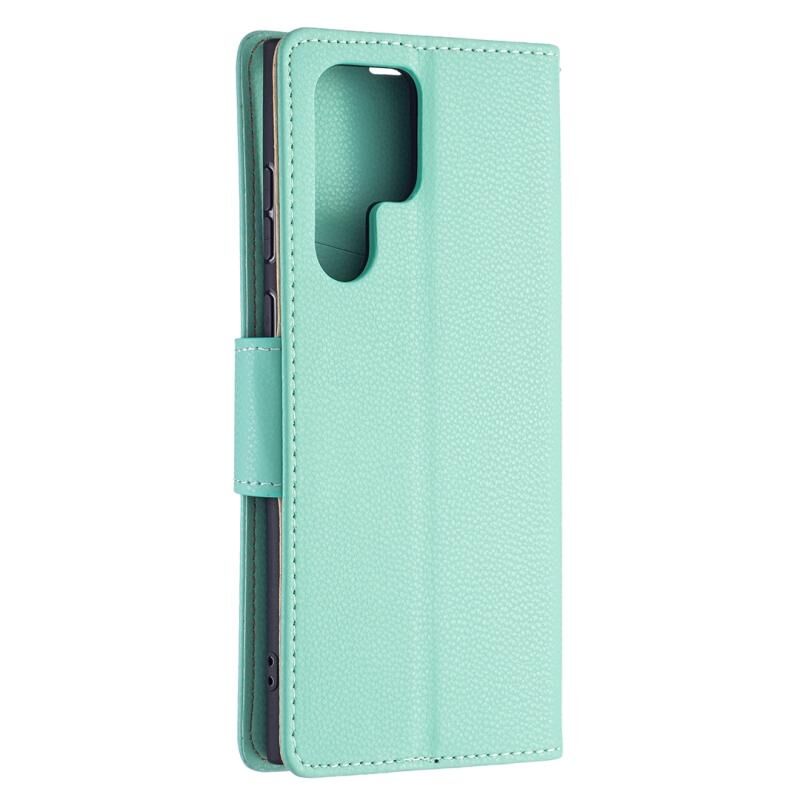 Για Samsung Galaxy S22 Ultra 5G Litchi υφή καθαρό χρώμα οριζόντια Flip δερμάτινη θήκη τηλεφώνου με θήκη & υποδοχές για κάρτες & πορτοφόλι & κορδόνι (πράσινο)