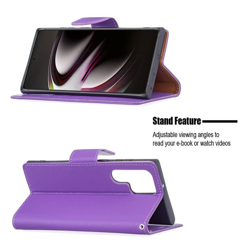 Για Samsung Galaxy S22 Ultra 5G Litchi υφή καθαρό χρώμα οριζόντια Flip δερμάτινη θήκη τηλεφώνου με θήκη & υποδοχές για κάρτες & πορτοφόλι & κορδόνι (μωβ)