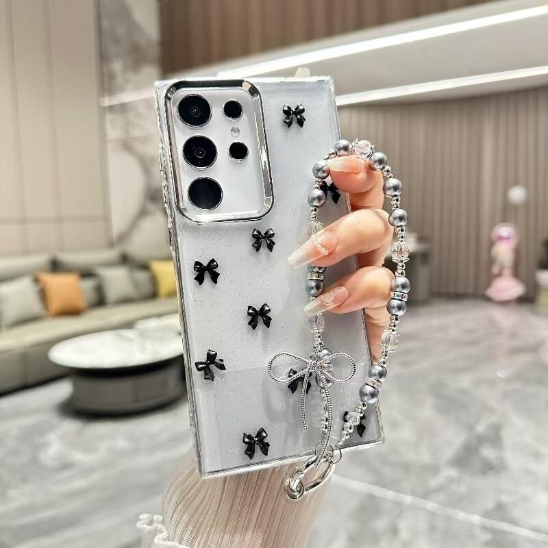 For Samsung Galaxy S22 Ultra 5G Little Fresh Bow Bracelet Chain TPU Phone Case(Black)