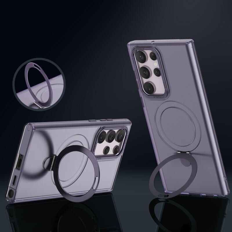 For Samsung Galaxy S22 Ultra 5G LK 3 in 1 MagSafe Magnetic Holder Phone Case(Purple)