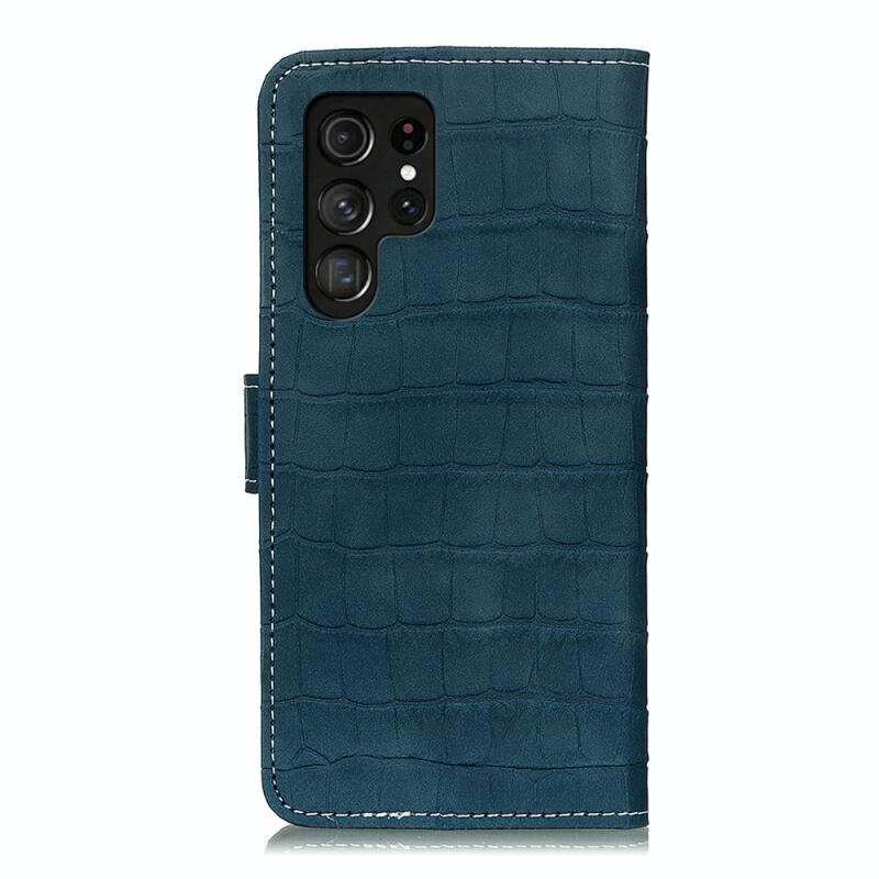 For Samsung Galaxy S22 Ultra 5G Magnetic Crocodile Texture Horizontal Flip Leather Case with Holder & Card Slots & Wallet(Green)