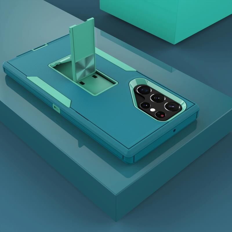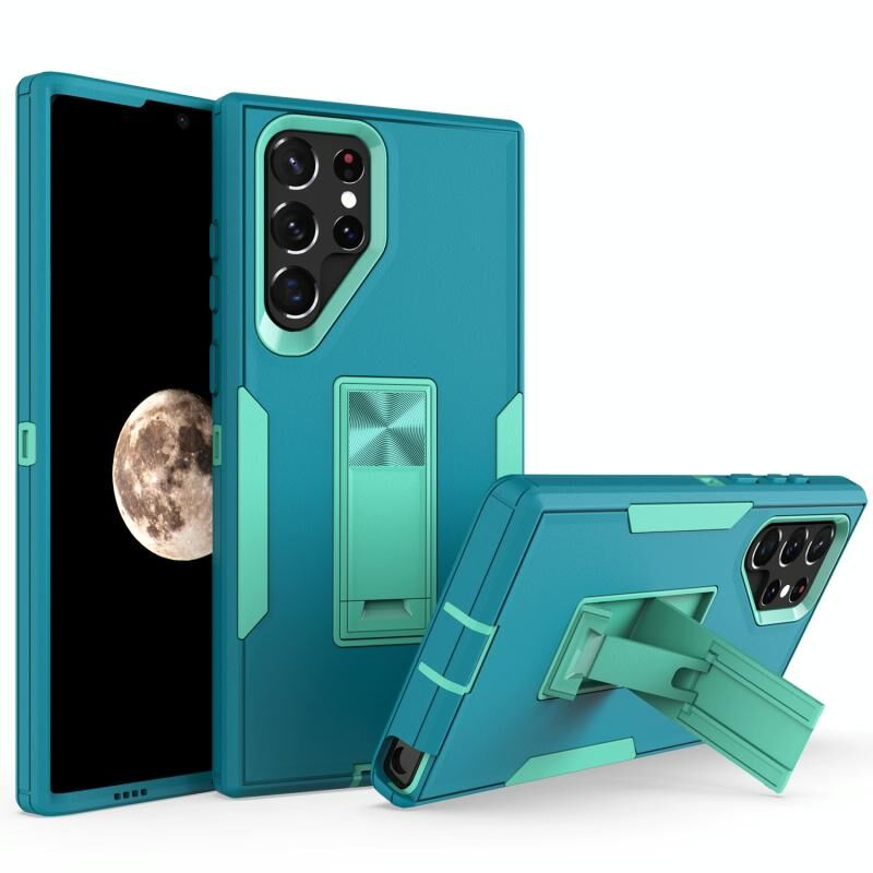 Για Samsung Galaxy S22 Ultra 5G Μαγνητική θήκη τηλεφώνου κάτοχος (Λίμνη μπλε + μπλε-πράσινο)