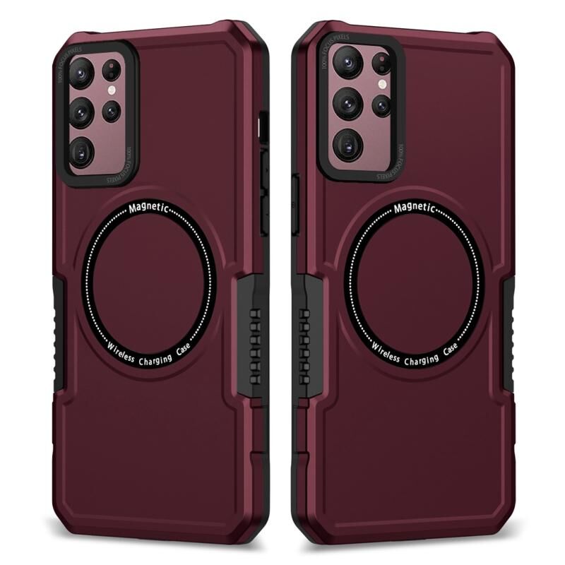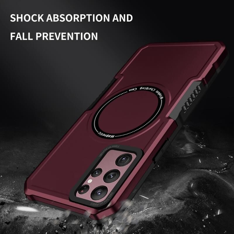 For Samsung Galaxy S22 Ultra 5G MagSafe Shockproof Armor Phone Case(Wine Red)