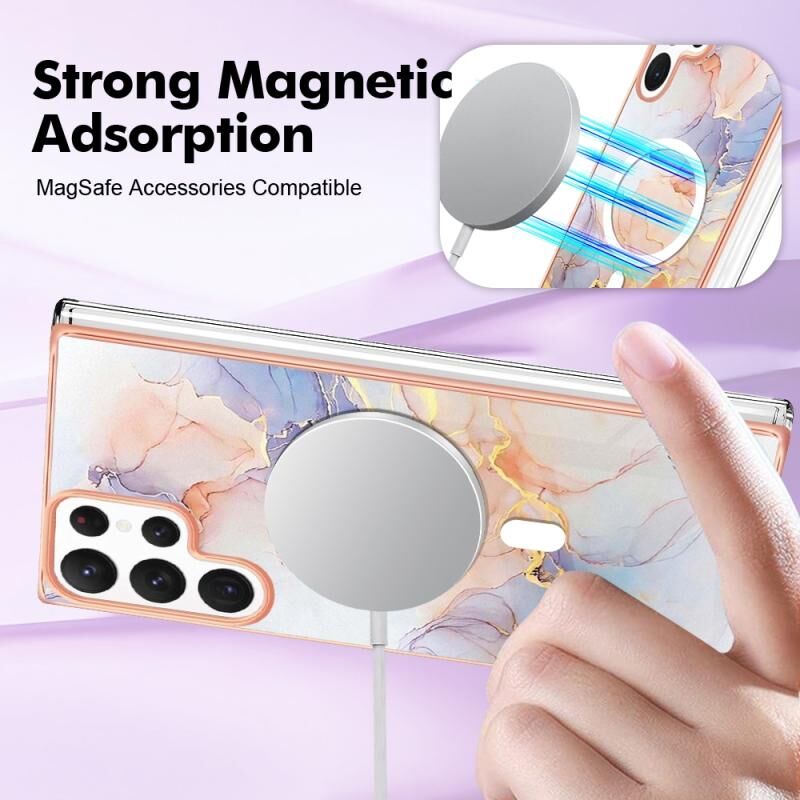 Θήκη κινητού τηλεφώνου Samsung Galaxy S22 Ultra 5G, μοτίβο μάρμαρου, διπλής όψης IMD, Magsafe, TPU (Λευκό Μάρμαρο)