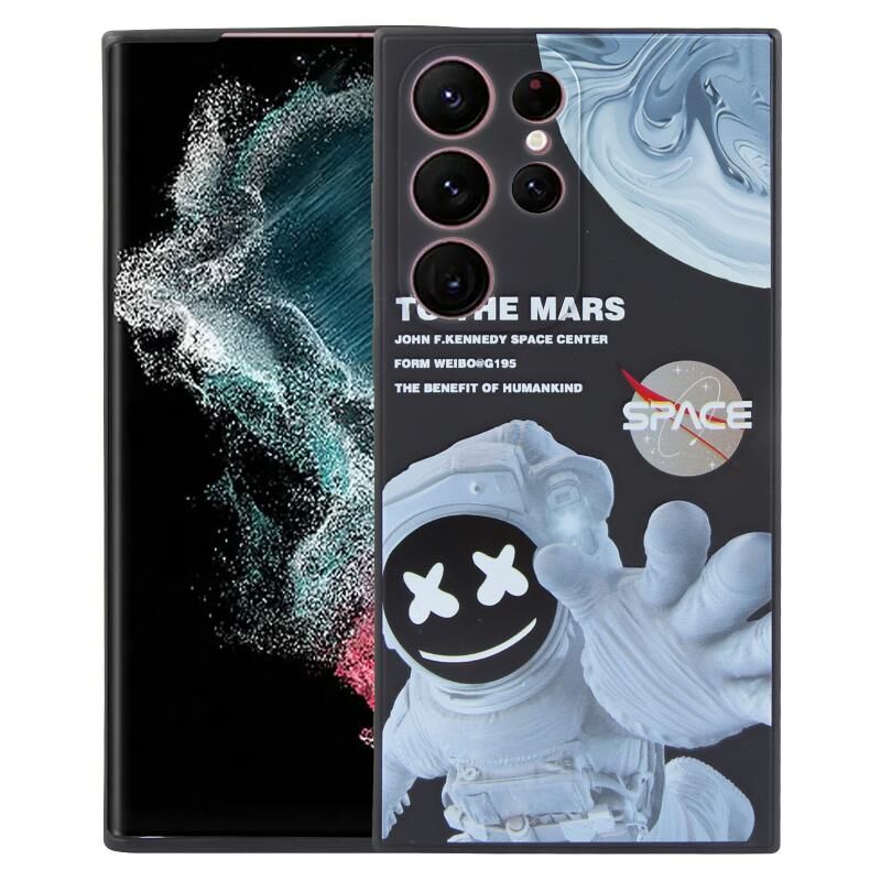 For Samsung Galaxy S22 Ultra 5G Martian Astronaut Pattern Shockproof Phone Case(Black)