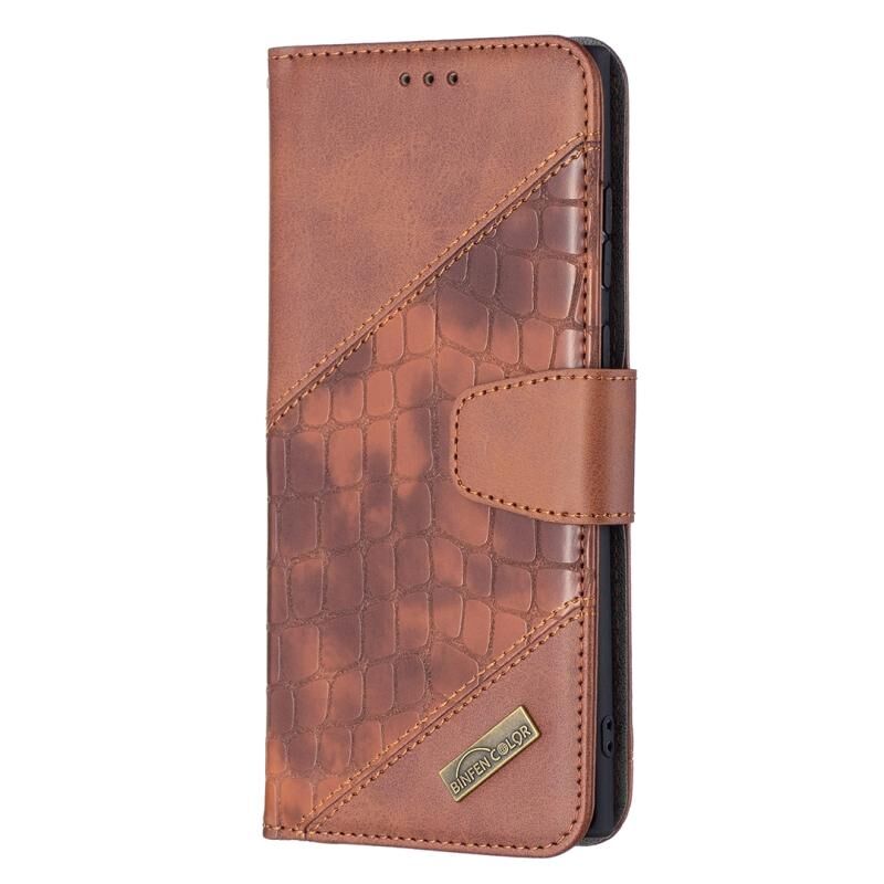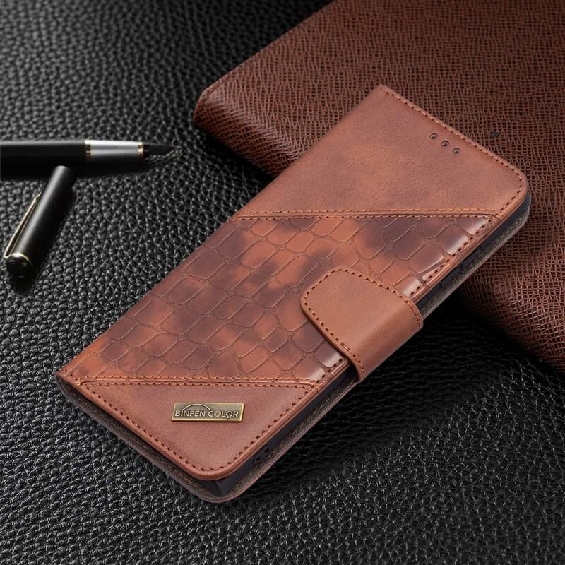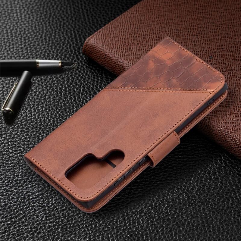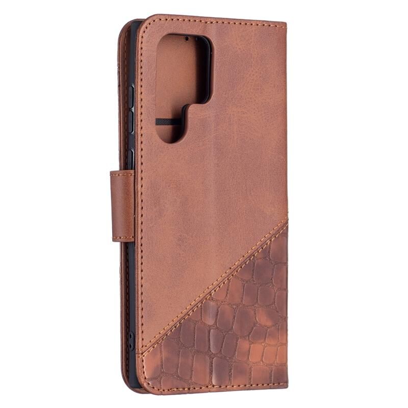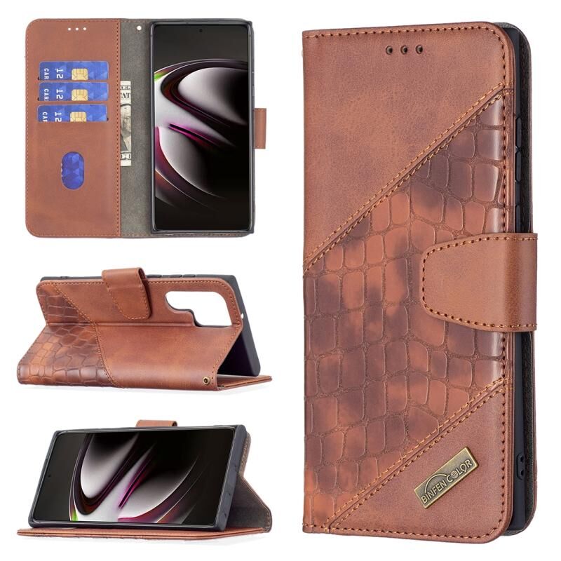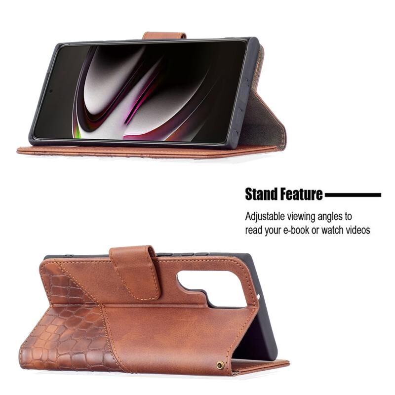 Για Samsung Galaxy S22 Ultra 5G Matching Color Crocodile Texture Δερμάτινη θήκη τηλεφώνου με θήκη & υποδοχές για κάρτες & πορτοφόλι (καφέ)