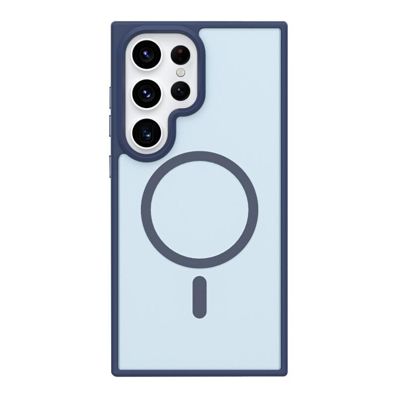 Θήκη κινητού τηλεφώνου για Samsung Galaxy S22 Ultra 5G, μεταλλική αίσθηση κουμπιού, ματ, με MagSafe, ανθεκτική στις κρούσεις (Σκούρο Μπλε)
