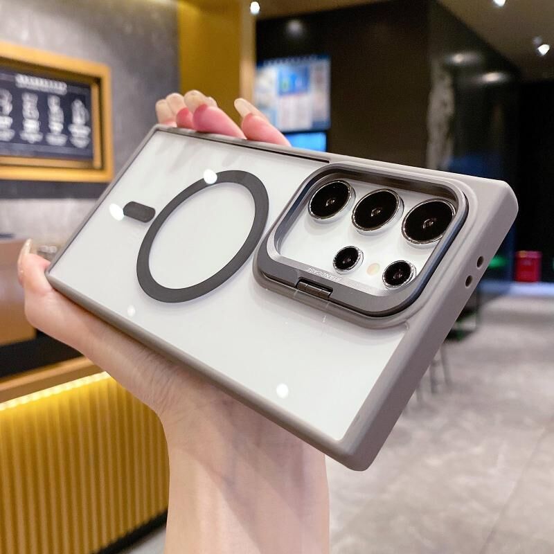 For Samsung Galaxy S22 Ultra 5G Metal Lens Frame Holder MagSafe Phone Case(Grey)