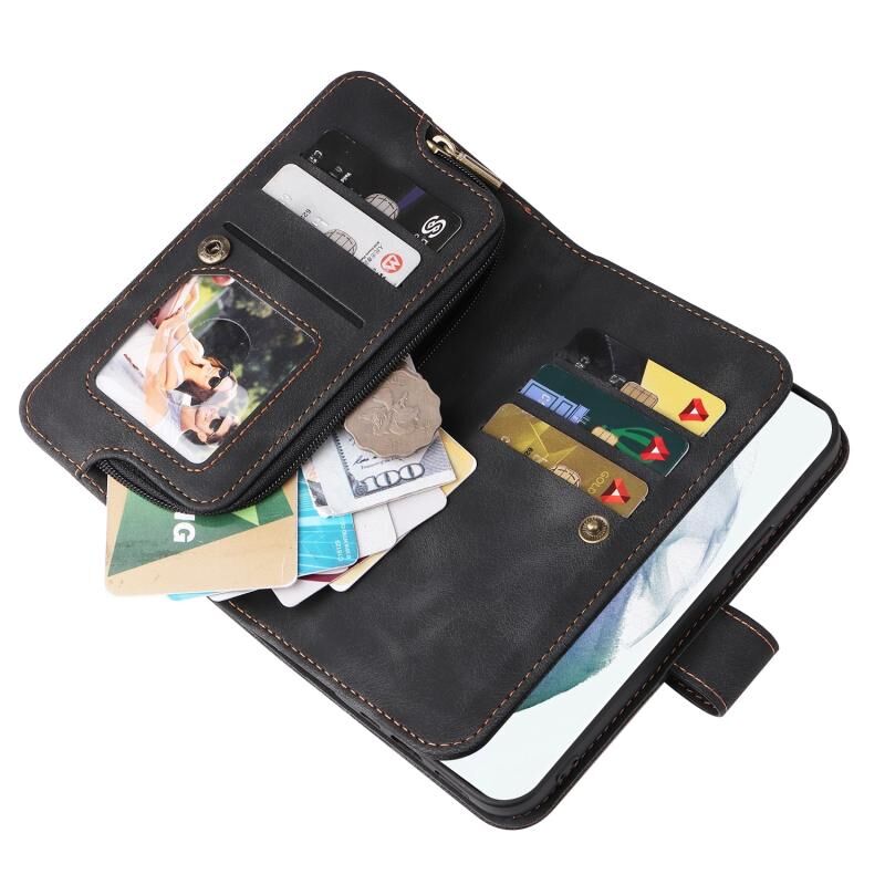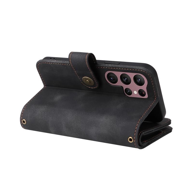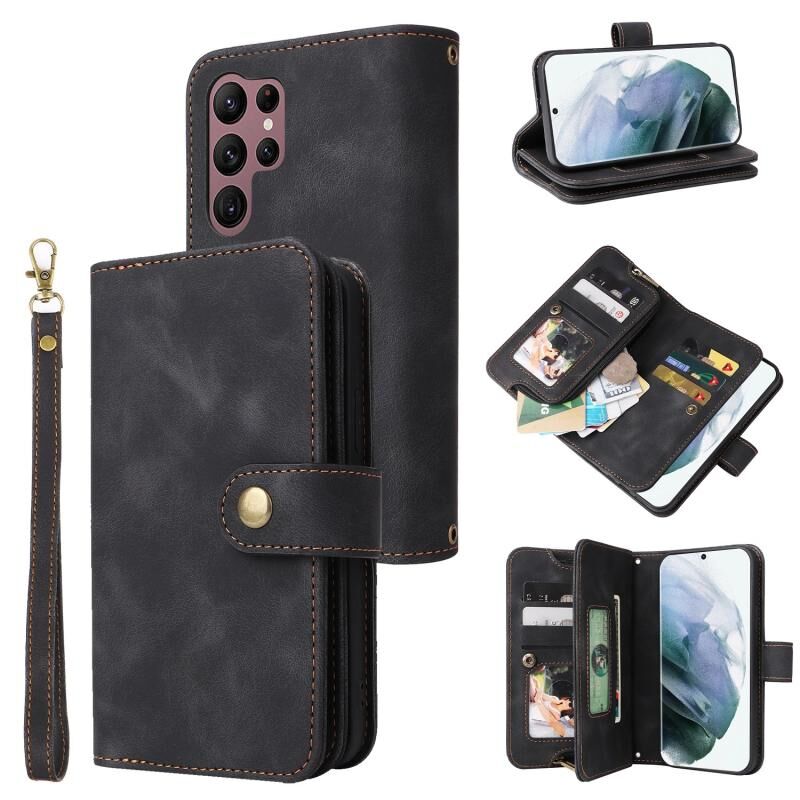 Για Samsung Galaxy S22 Ultra 5G Πολυλειτουργική κάρτα Slot φερμουάρ πορτοφόλι δερμάτινη θήκη τηλεφώνου (μαύρο)