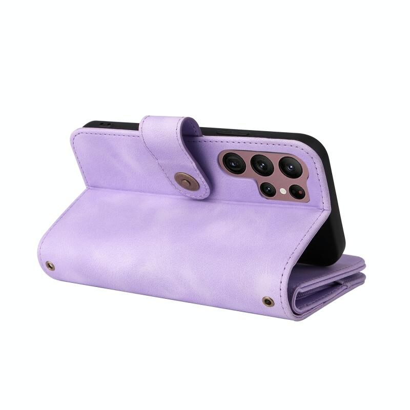 Για Samsung Galaxy S22 Ultra 5G Πολυλειτουργική κάρτα Slot φερμουάρ πορτοφόλι δερμάτινη θήκη τηλεφώνου (μωβ)