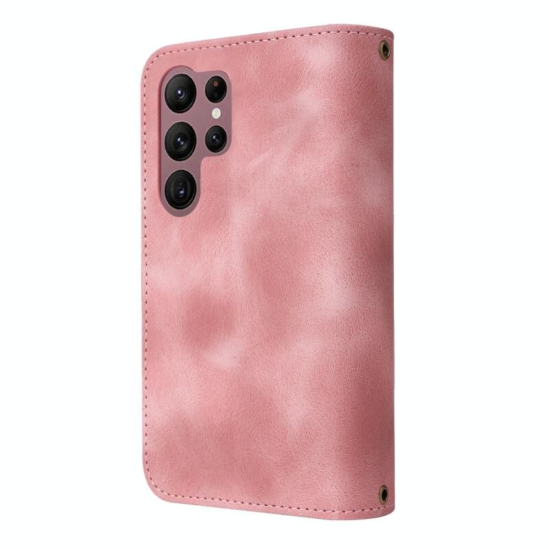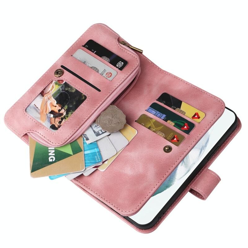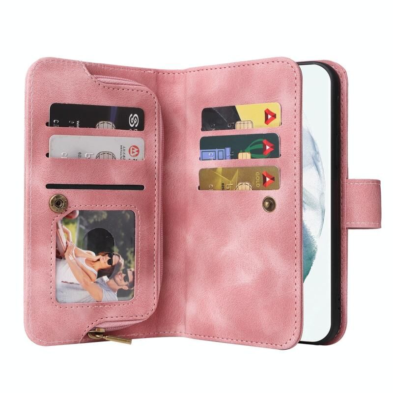 Για Samsung Galaxy S22 Ultra 5G Πολυλειτουργική κάρτα Slot φερμουάρ πορτοφόλι δερμάτινη θήκη τηλεφώνου (Rose Gold)