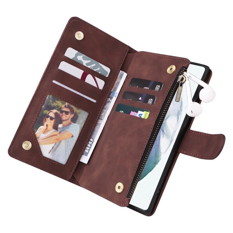 For Samsung Galaxy S22 Ultra 5G Multifunctional Frosted Zipper Wallet Leather Phone Case(Coffee)