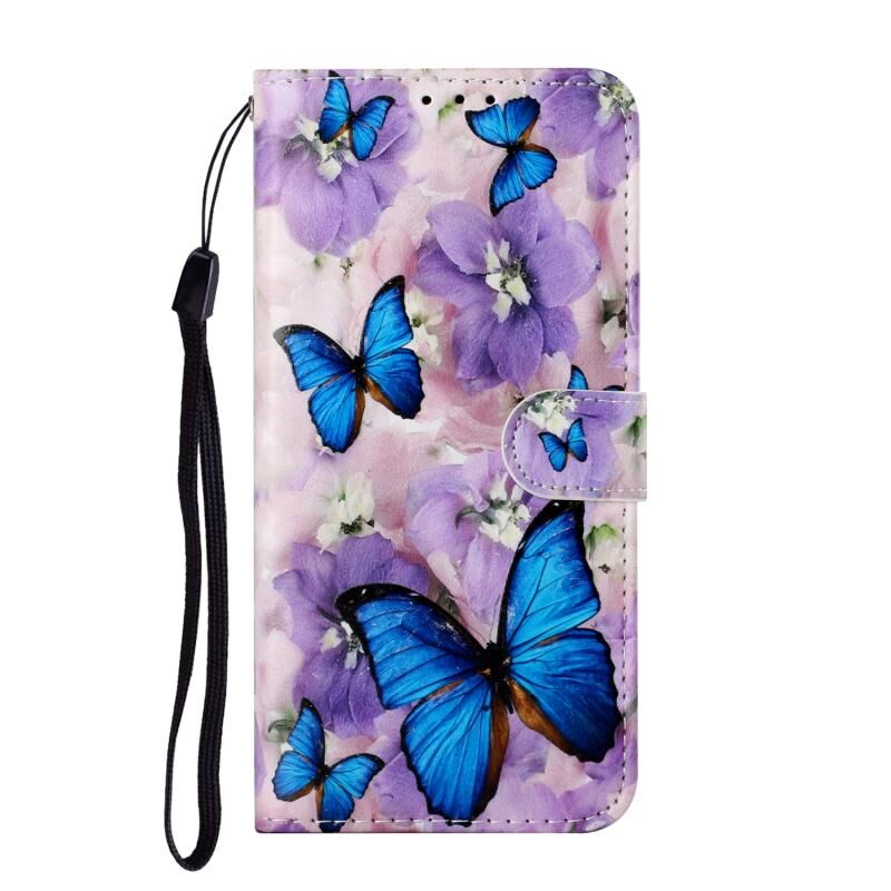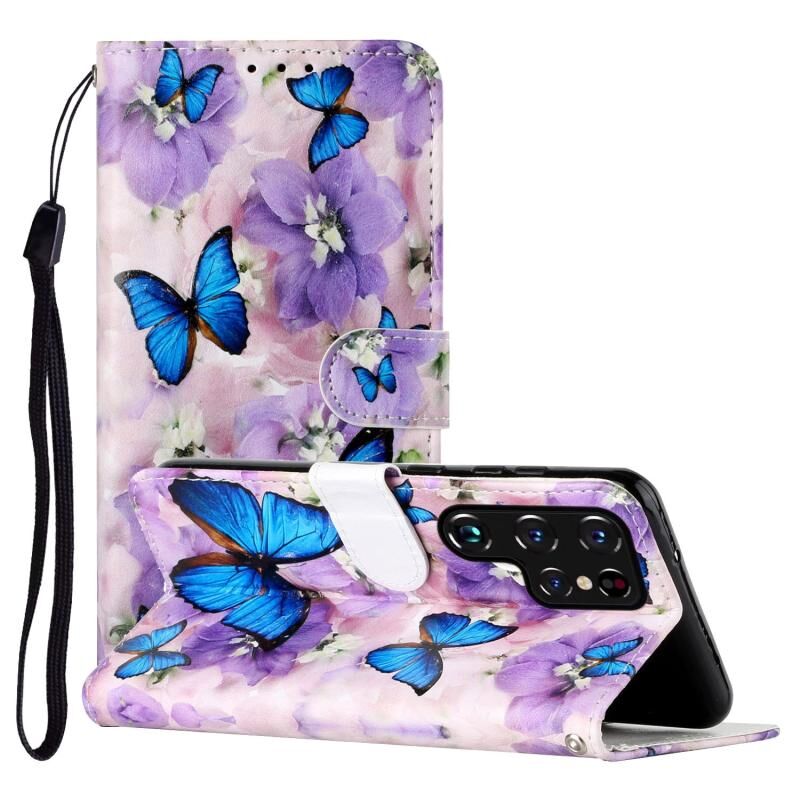 Θήκη τηλεφώνου Samsung Galaxy S22 Ultra 5G από δερματίνη PU με ανάγλυφο σχέδιο λαδιού (Μπλε Κουκουβάγια)