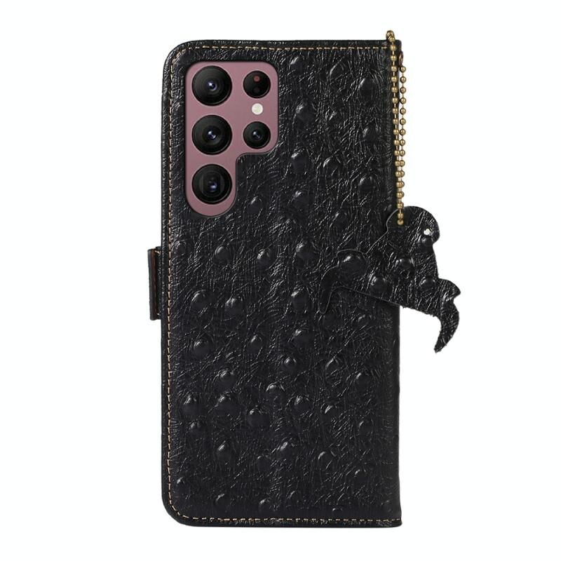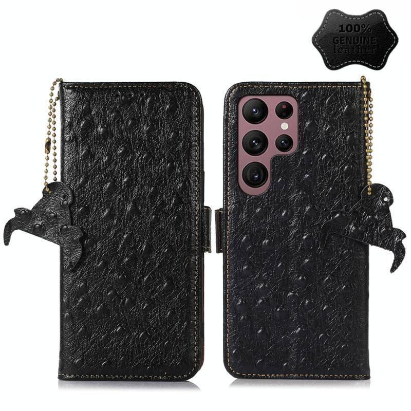 Θήκη τηλεφώνου Samsung Galaxy S22 Ultra 5G από γνήσιο δέρμα με σχέδιο στρουθοκάμηλου και προστασία RFID (Πράσινο)