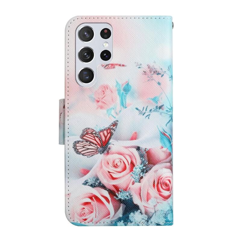 Θήκη τηλεφώνου Samsung Galaxy S22 Ultra 5G από δέρμα με οριζόντιο άνοιγμα και ζωγραφισμένο σχέδιο (Παιώνια-Πεταλούδα)