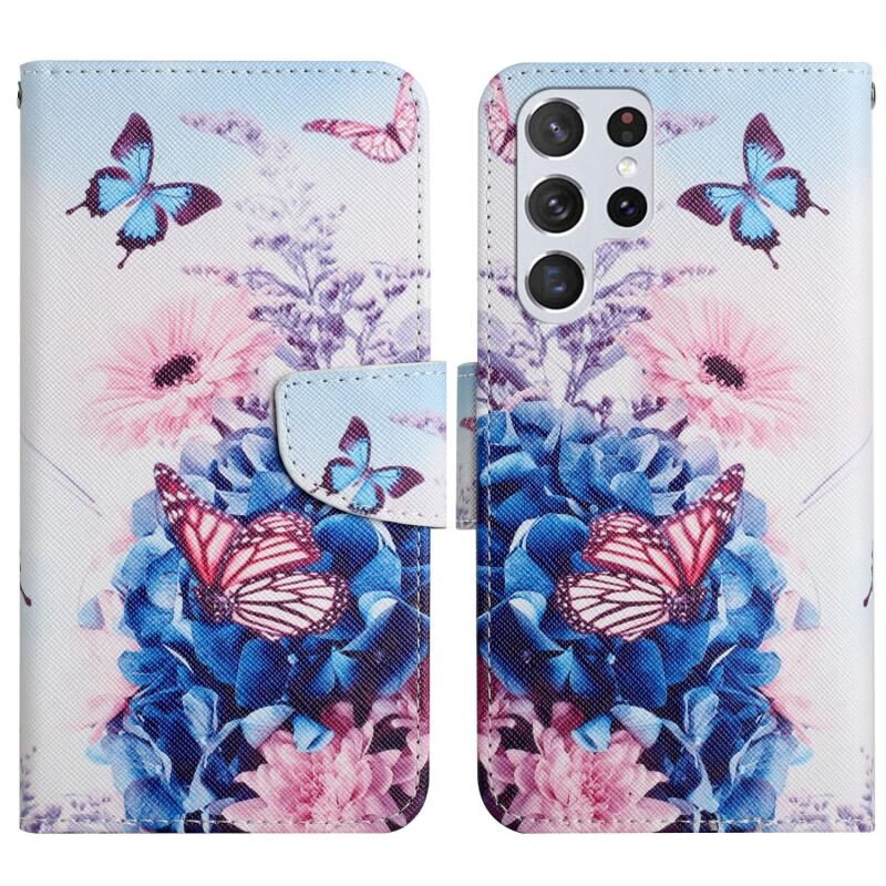 Θήκη τηλεφώνου Samsung Galaxy S22 Ultra 5G από δέρμα με οριζόντιο άνοιγμα και ζωγραφισμένο σχέδιο (Κόκκινο Λουλούδι)