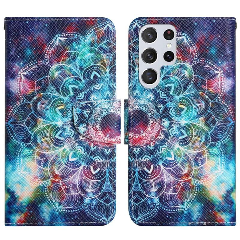 Θήκη τηλεφώνου Samsung Galaxy S22 Ultra 5G από δέρμα με οριζόντιο άνοιγμα και ζωγραφισμένο σχέδιο (Starry Mandala)