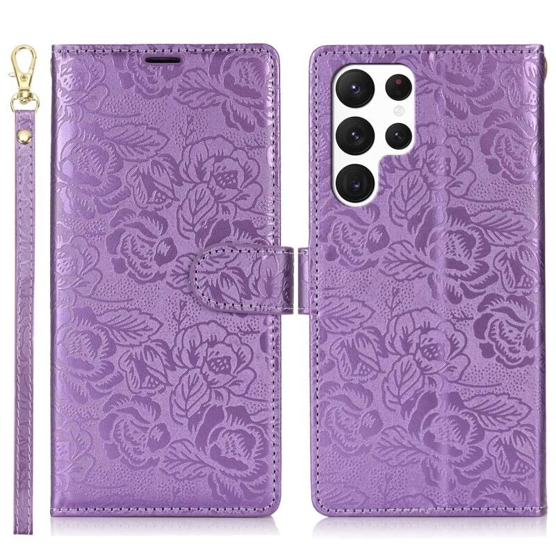For Samsung Galaxy S22 Ultra 5G Peony Flowers Imprint Leather Phone Case(Purple)