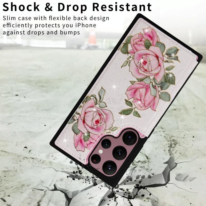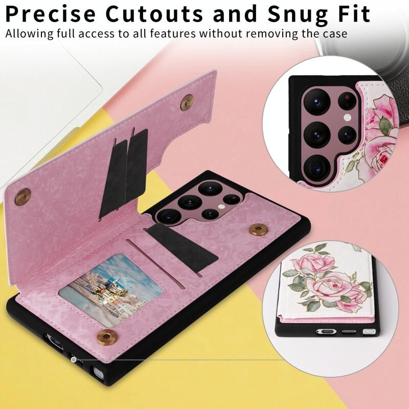 Θήκη τηλεφώνου με εκτύπωση για Samsung Galaxy S22 Ultra 5G, διπλή αγκράφα, αντι-κλοπής RFID (Ροζ)