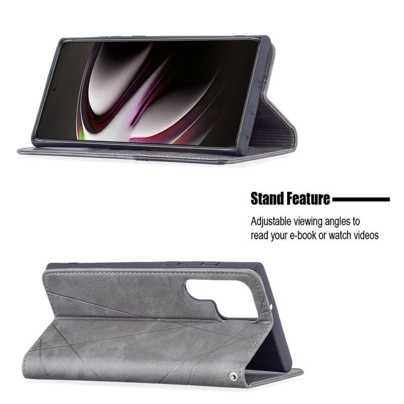 Για Samsung Galaxy S22 Ultra 5G Prismatic Invisible Magnetic Horizontal Flip Phone Leather Case με θήκη & υποδοχές για κάρτες & πλαίσιο φωτογραφιών (γκρι)