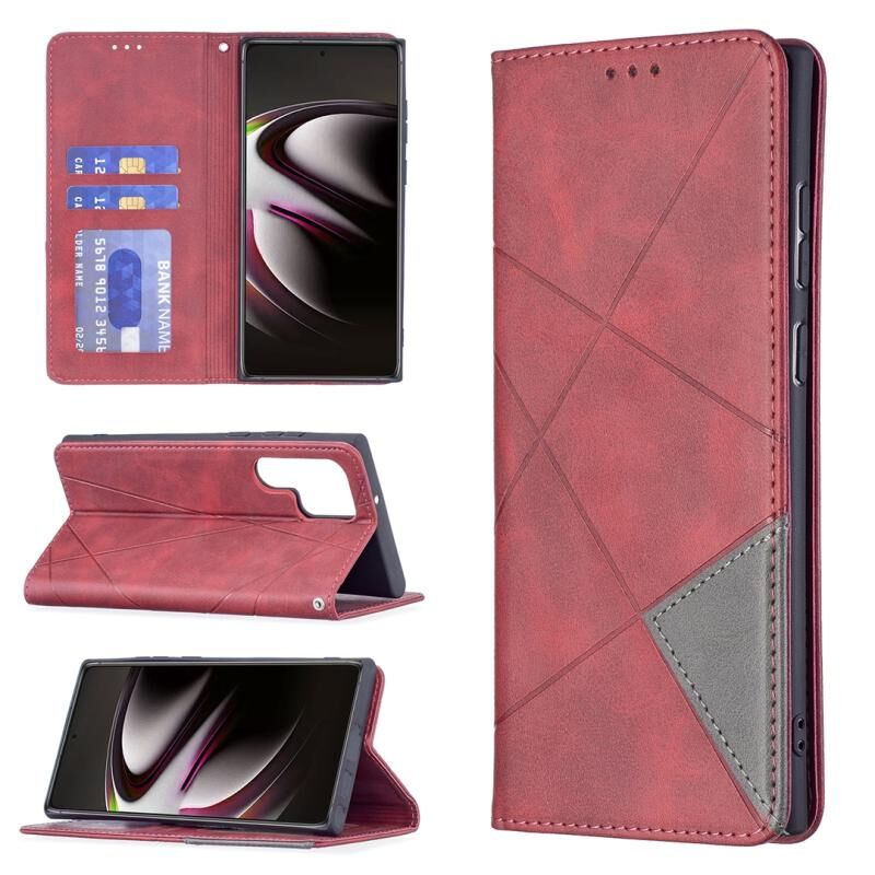 Για Samsung Galaxy S22 Ultra 5G Prismatic Invisible Magnetic Horizontal Flip Phone Leather Case με θήκη & υποδοχές για κάρτες & πλαίσιο φωτογραφιών (κόκκινο)
