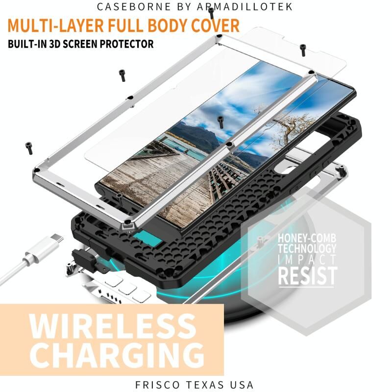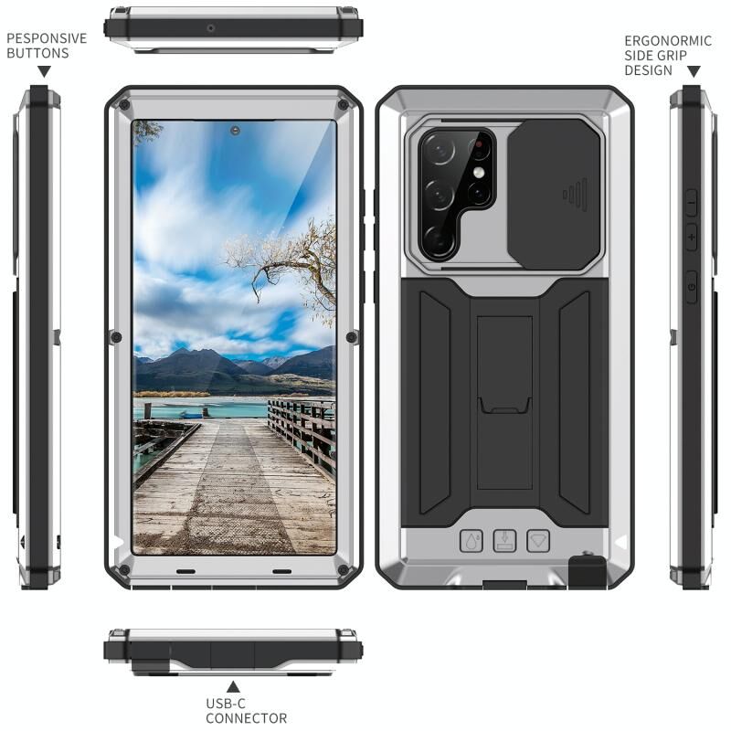 Θήκη κινητού τηλεφώνου για Samsung Galaxy S22 Ultra 5G R-JUST με μεταλλικό και σιλικόνη, με ολισθαίνουσα κάμερα (Ασημί) (R-JUST)