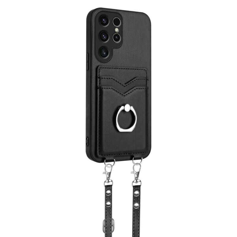 Για Samsung Galaxy S22 Ultra 5G R20 Crossbody σχοινί δαχτυλίδι κάτοχος κάρτας τηλέφωνο υπόθεση (μαύρο)