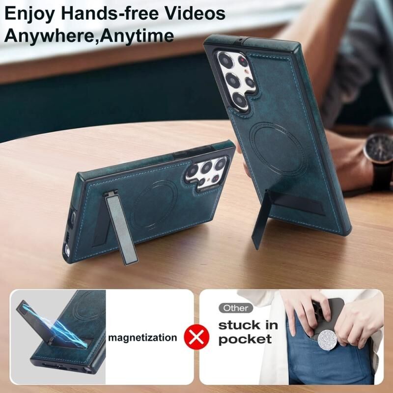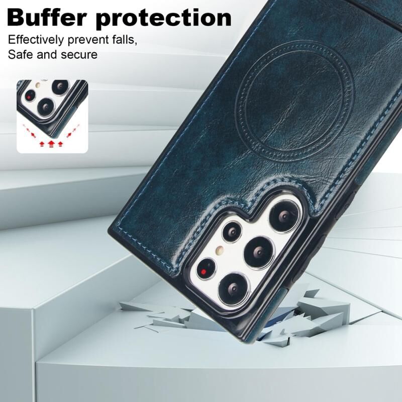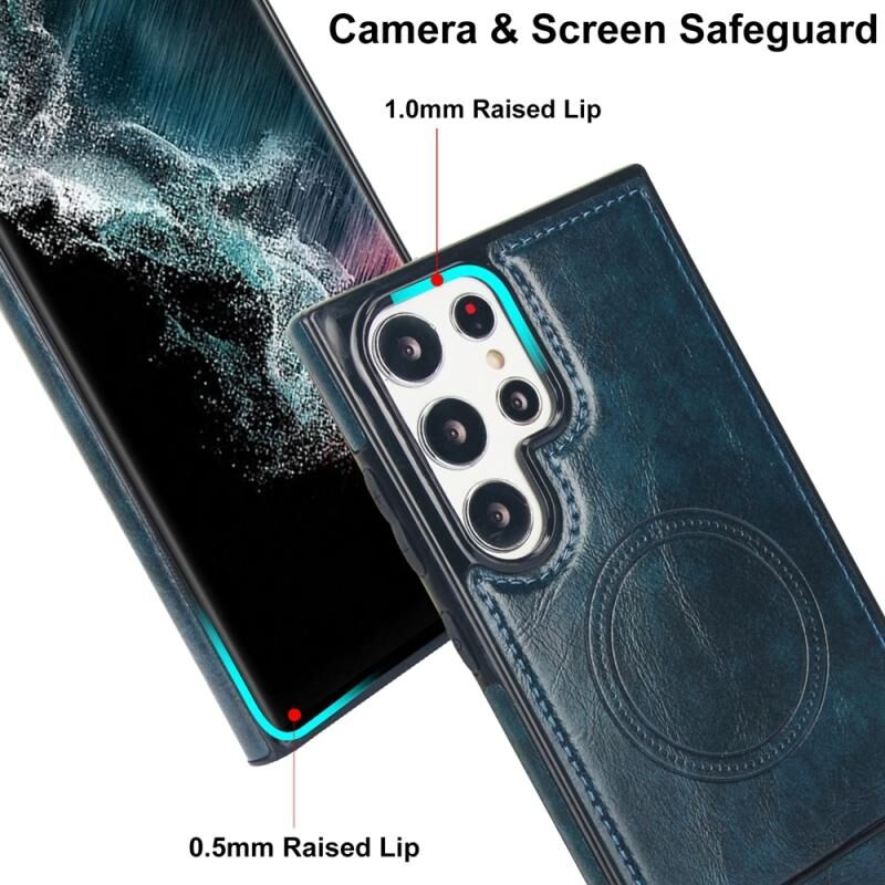 Θήκη τηλεφώνου Samsung Galaxy S22 Ultra 5G από δέρμα retro με αόρατο στήριγμα και MagSafe (Λευκό)