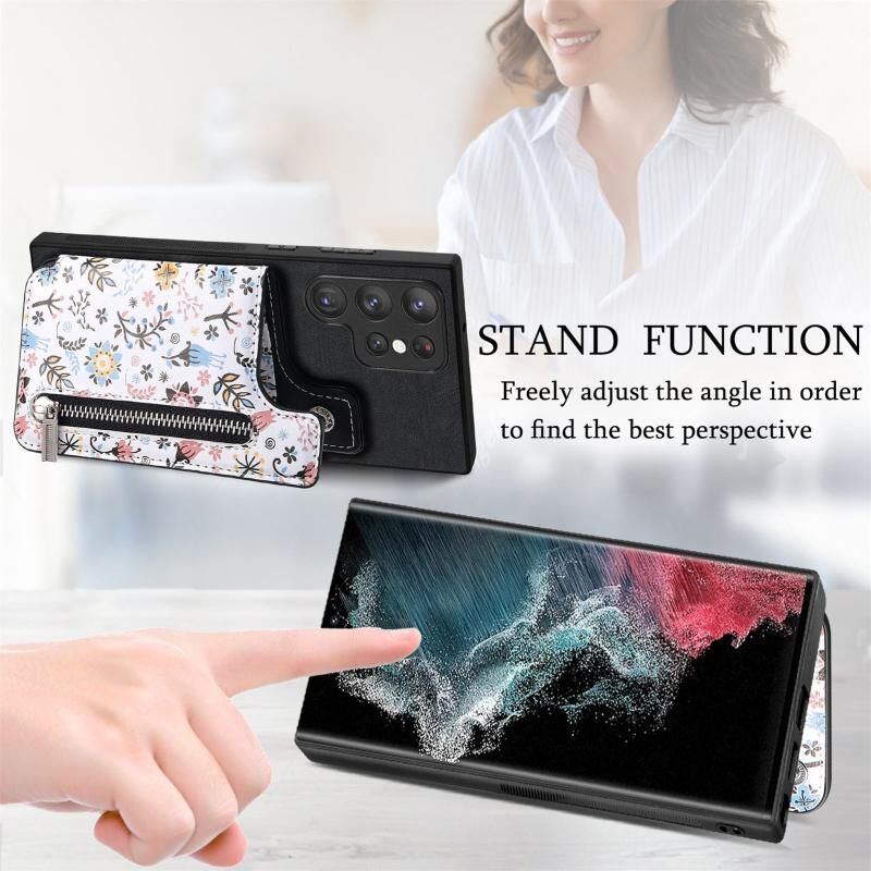 Για Samsung Galaxy S22 Ultra 5G ρετρό ζωγραφισμένο φερμουάρ πορτοφόλι πίσω τηλέφωνο υπόθεση (μαύρο)