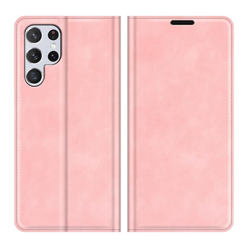 Για Samsung Galaxy S22 Ultra 5G Retro-skin Business Μαγνητική δερμάτινη θήκη αναρρόφησης με θήκη & υποδοχές καρτών & πορτοφόλι (ροζ)