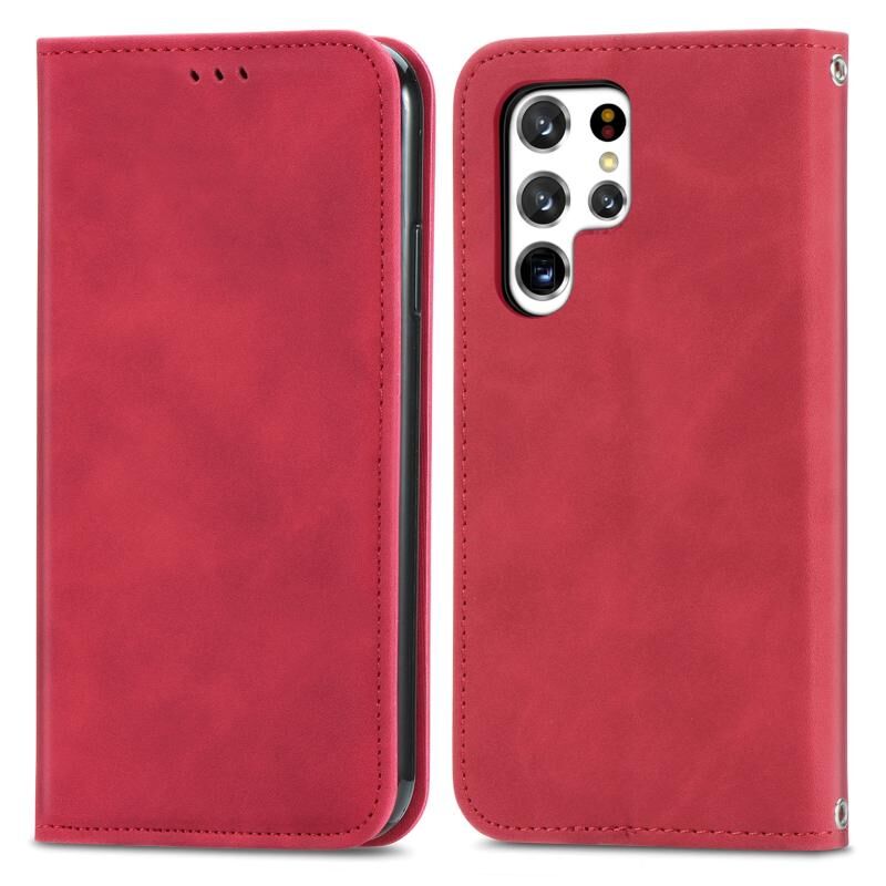 Για Samsung Galaxy S22 Ultra 5G Retro Skin Feel Μαγνητική οριζόντια Flip δερμάτινη θήκη με θήκη & υποδοχές για κάρτες & πορτοφόλι & κορνίζα φωτογραφιών (κόκκινο)