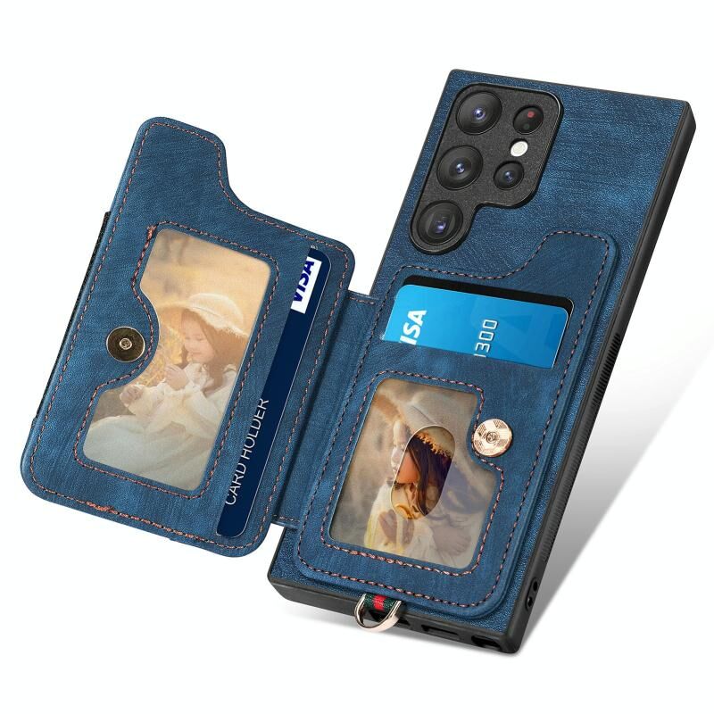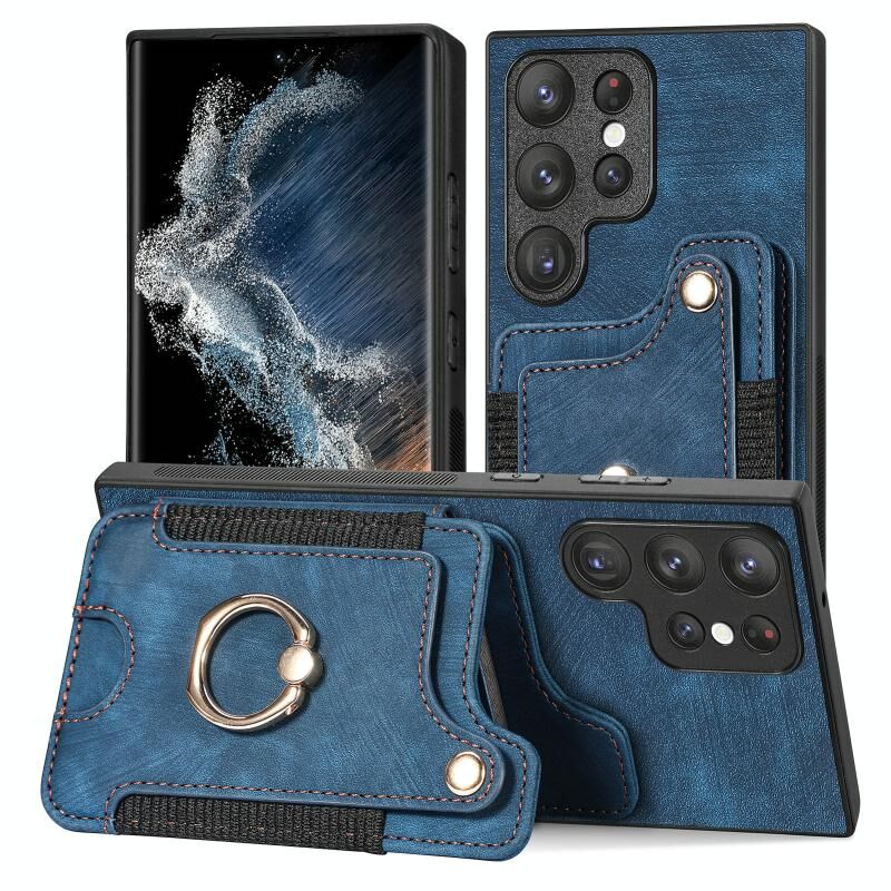 Για Samsung Galaxy S22 Ultra 5G Retro δέρμα-feel δαχτυλίδι δαχτυλίδι πολλαπλών καρτών πορτοφόλι υπόθεση τηλεφώνου (μπλε)