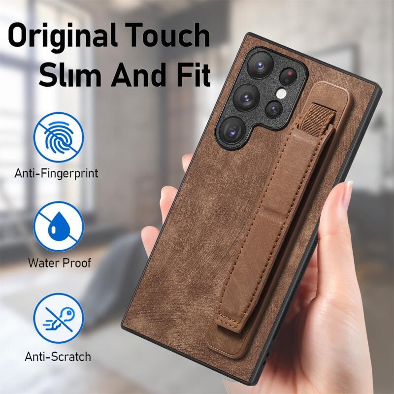 Για Samsung Galaxy S22 Ultra 5G Retro Wristband κάτοχος δέρμα πίσω τηλέφωνο υπόθεση (καφέ)