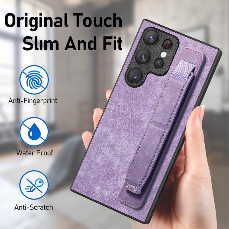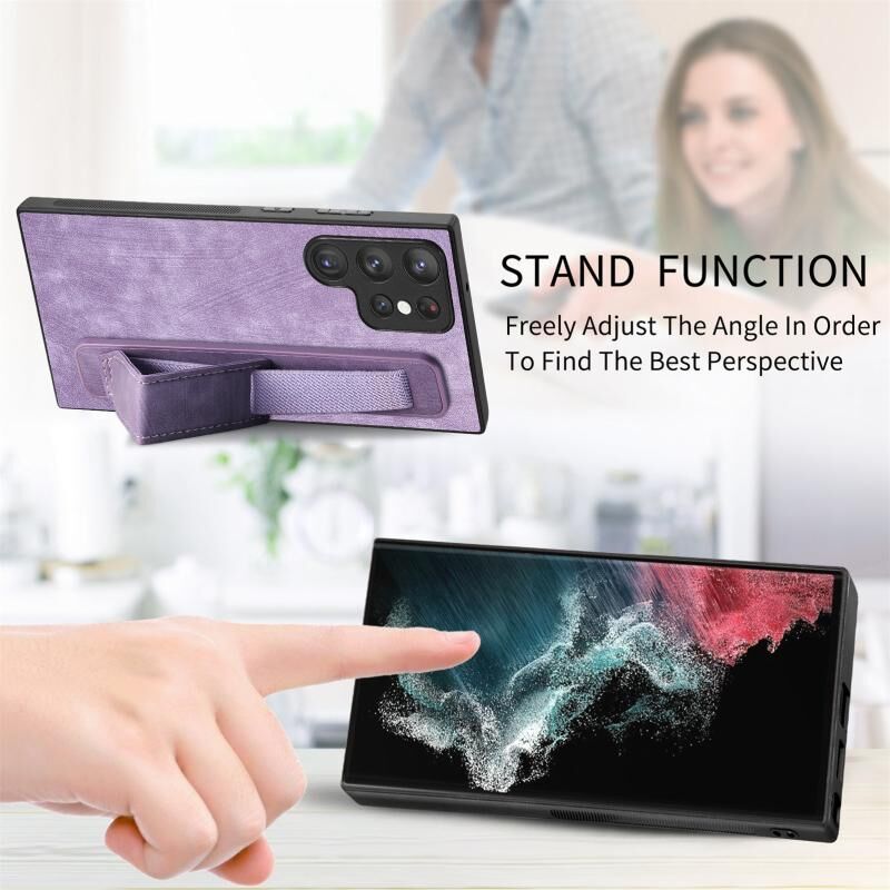 Για Samsung Galaxy S22 Ultra 5G Retro Wristband κάτοχος δέρμα πίσω τηλέφωνο υπόθεση (μωβ)