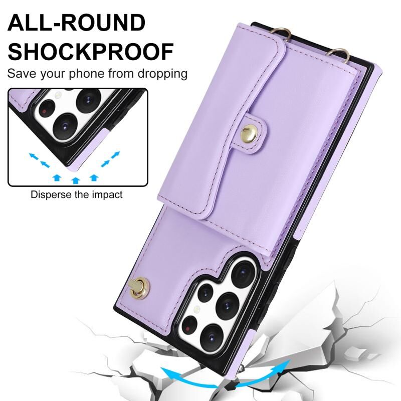 Για Samsung Galaxy S22 Ultra 5G RFID Slot κάρτα δερμάτινη θήκη τηλεφώνου με μακρύ κορδόνι (μωβ)