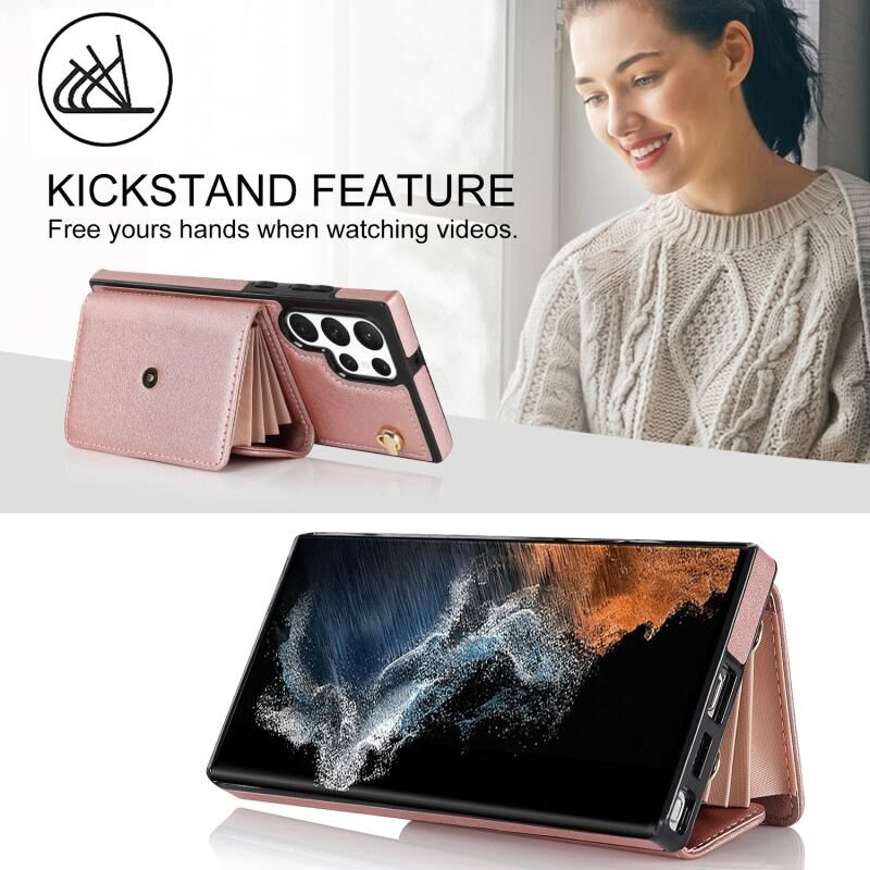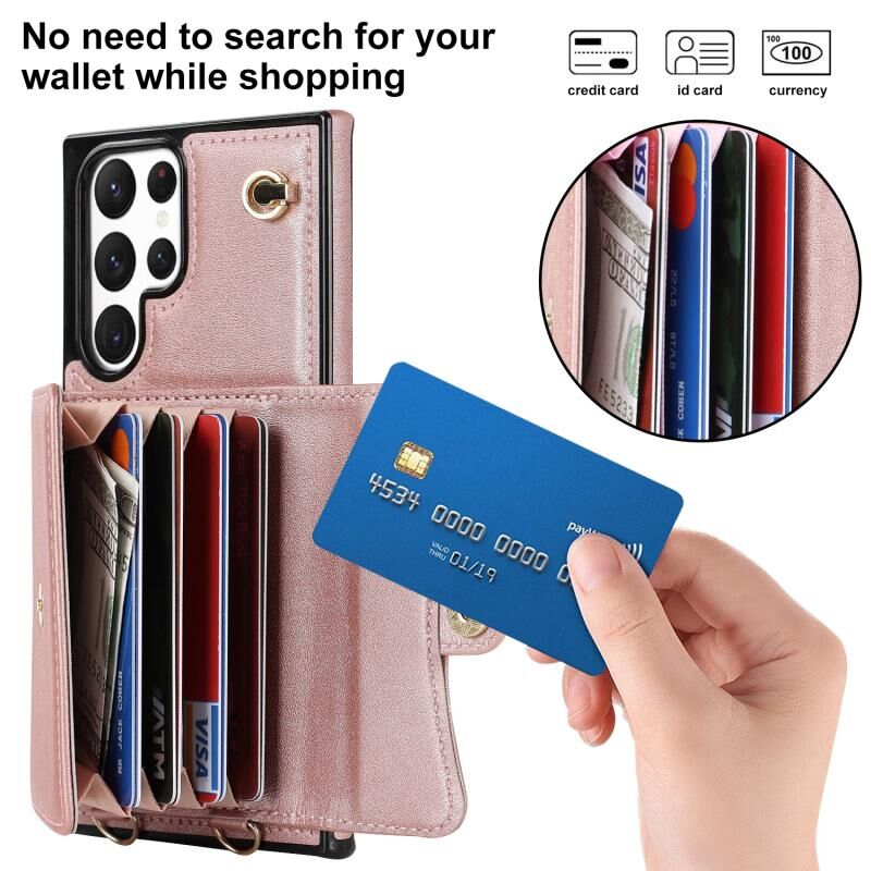 Για Samsung Galaxy S22 Ultra 5G RFID Slot κάρτα δερμάτινη θήκη τηλεφώνου με μακρύ κορδόνι (ροζ χρυσό)