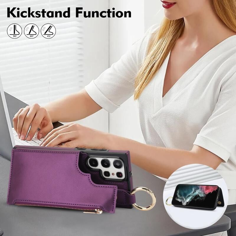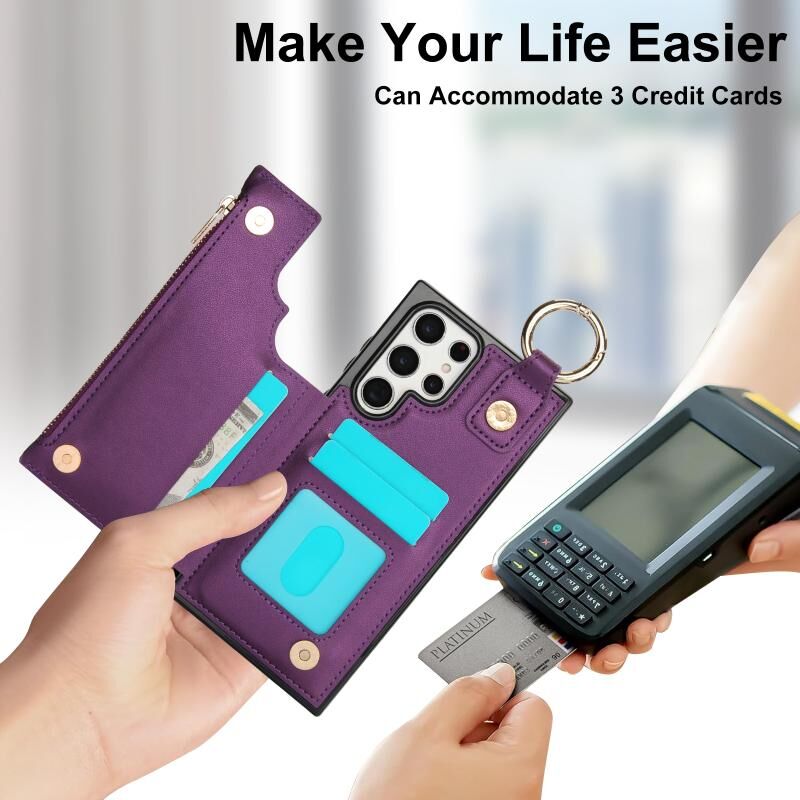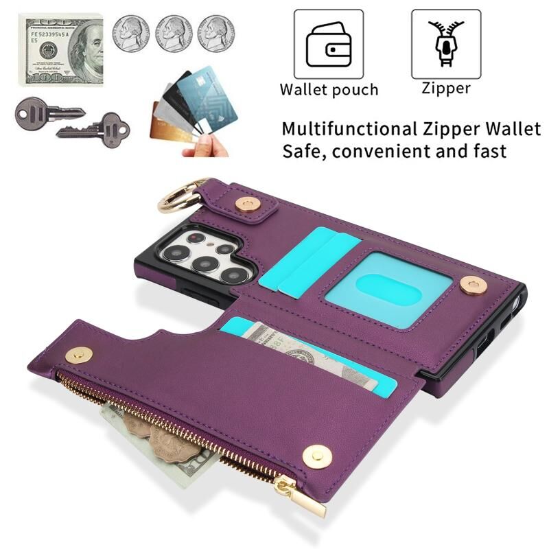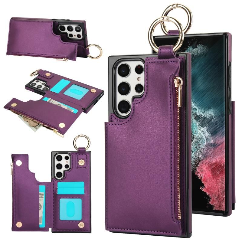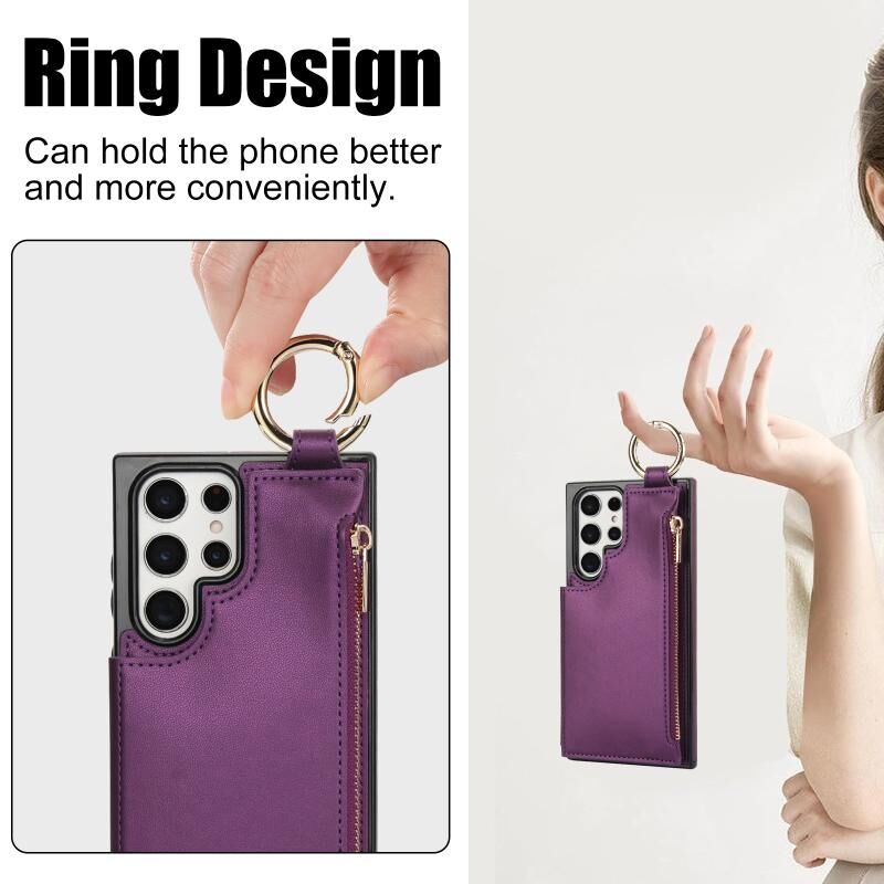 Για Samsung Galaxy S22 Ultra 5G RFlD Anti-theft Διπλό πόρπη δαχτυλίδι φερμουάρ τηλέφωνο υπόθεση κάρτα (σκούρο μωβ)