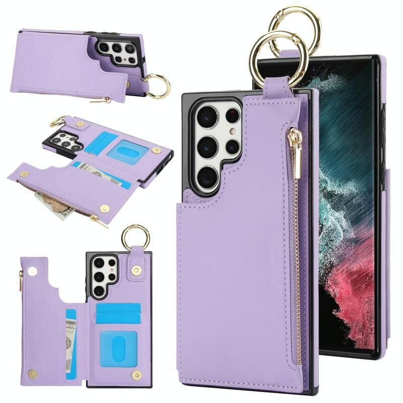 Για Samsung Galaxy S22 Ultra 5G RFlD Anti-theft Διπλό πόρπη δαχτυλίδι φερμουάρ τηλέφωνο υπόθεση κάρτα (μωβ)