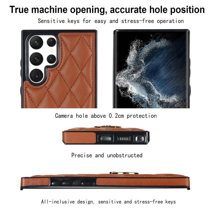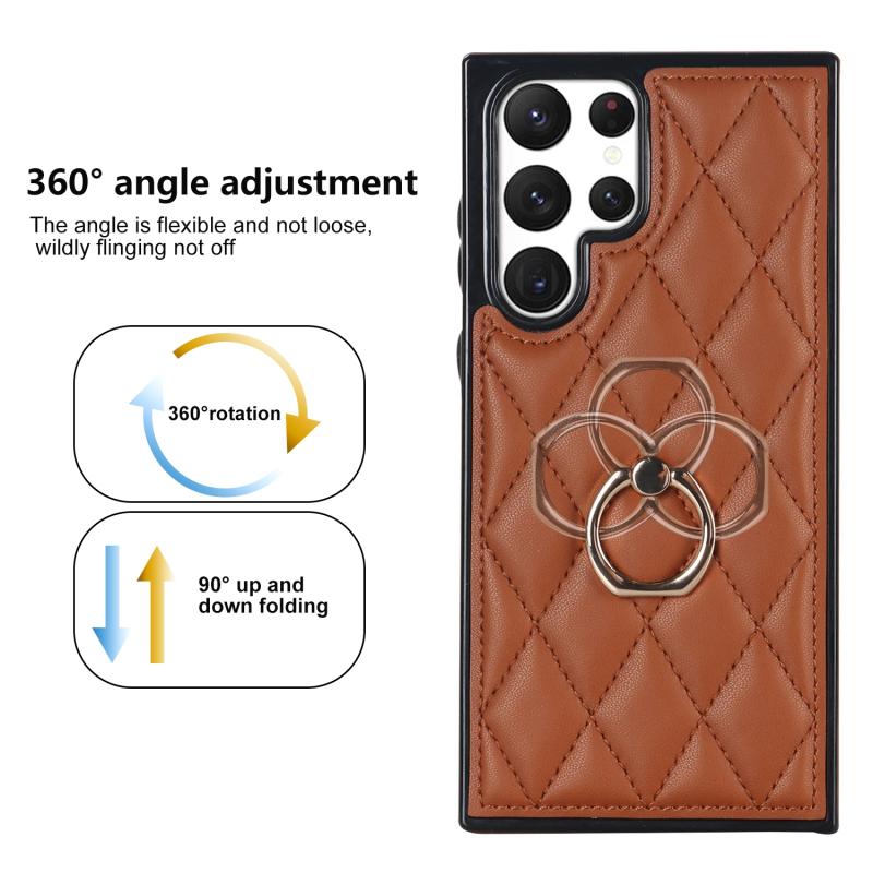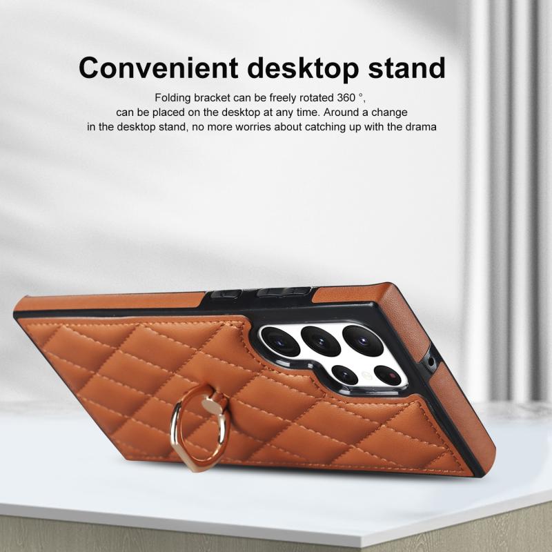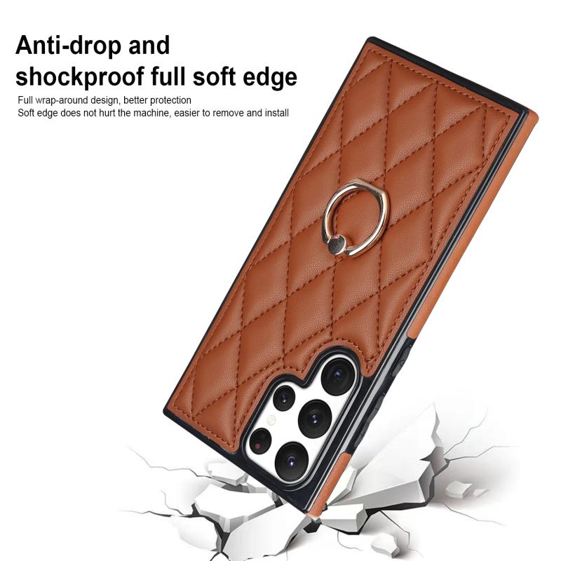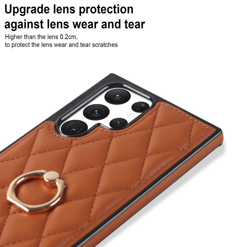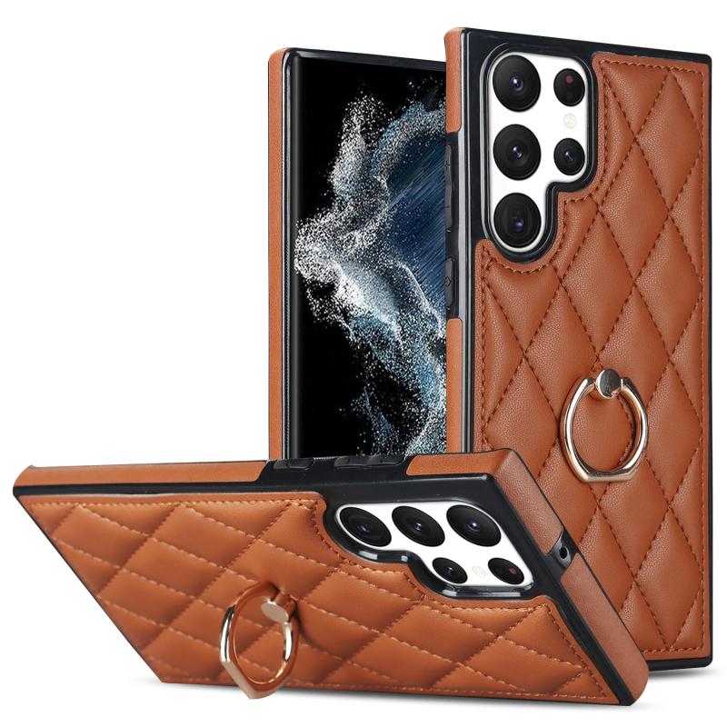 Θήκη κινητού τηλεφώνου Samsung Galaxy S22 Ultra 5G από δερματίνη PU με ρόμβους και δακτύλιο στήριξης (Καφέ)