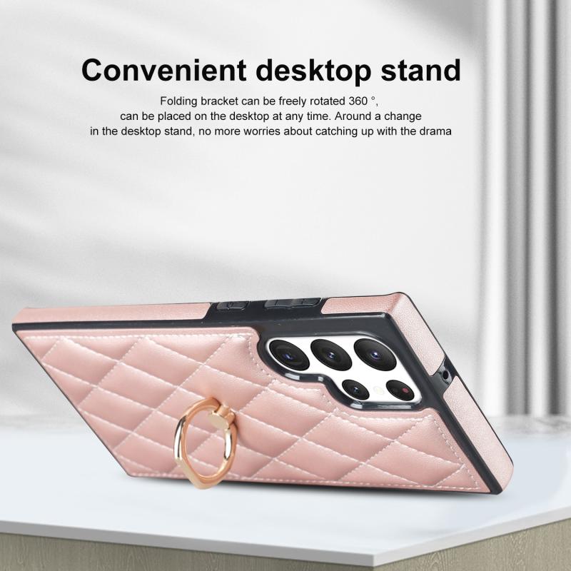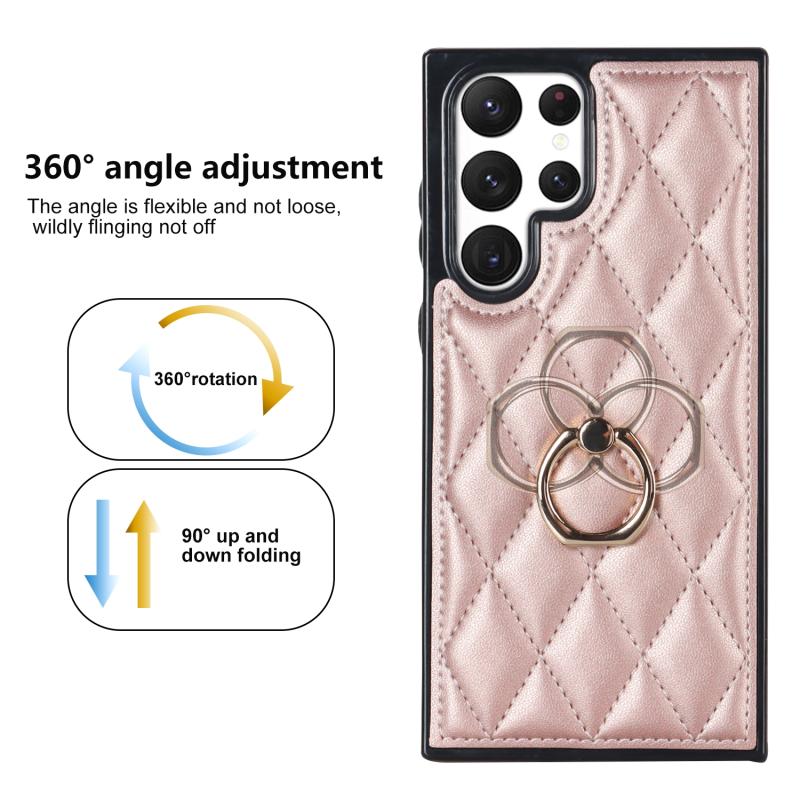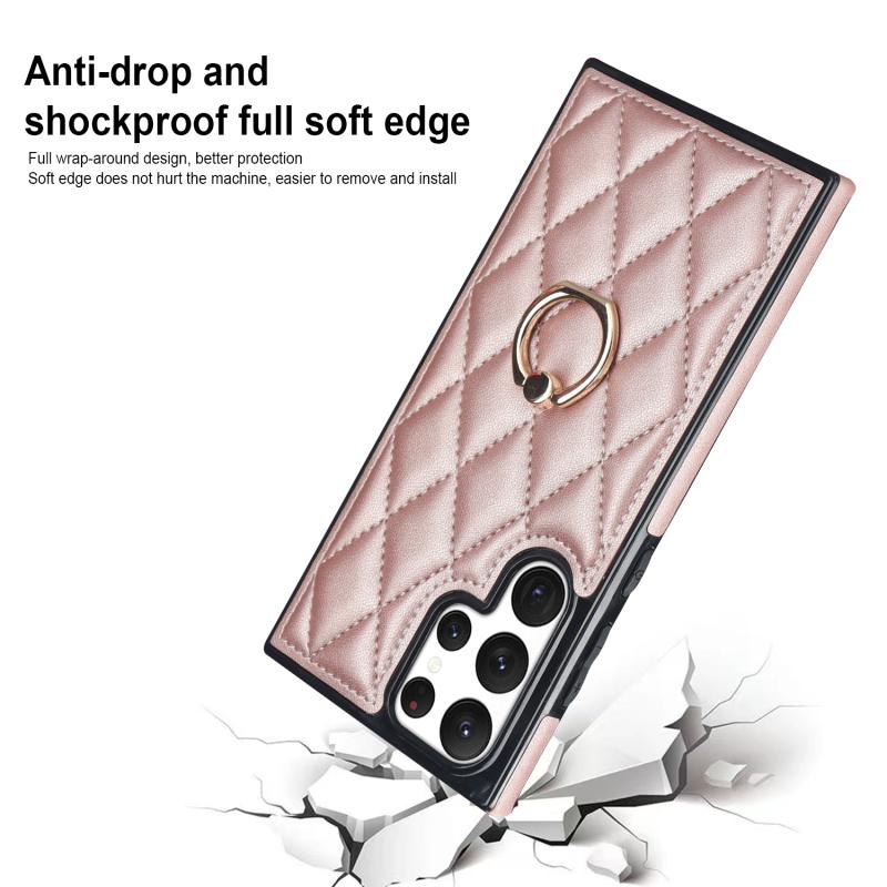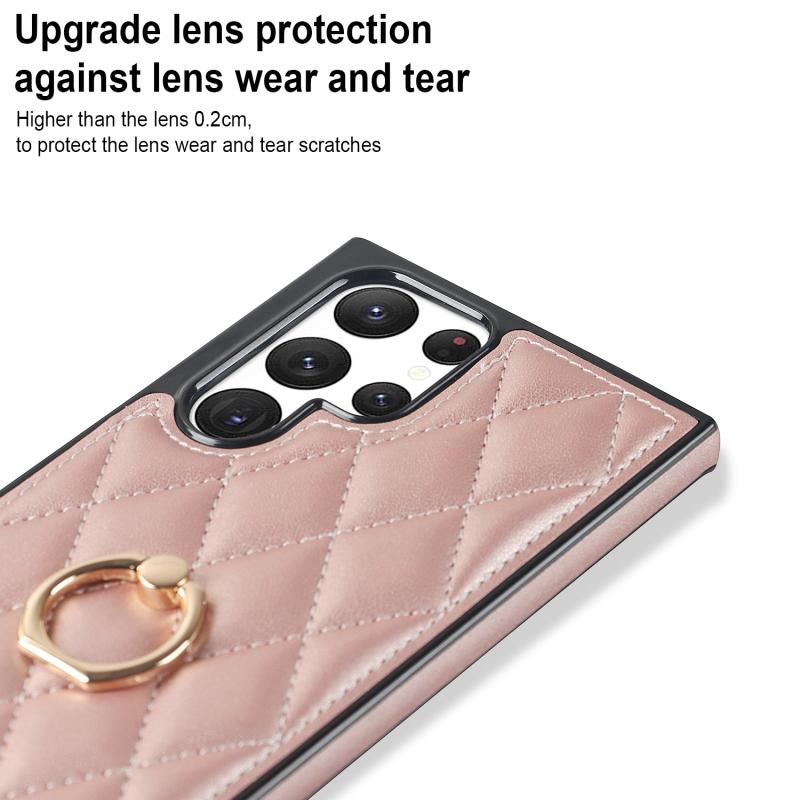 Θήκη κινητού τηλεφώνου Samsung Galaxy S22 Ultra 5G από δερματίνη PU με ρόμβους και δακτύλιο στήριξης (Μωβ)