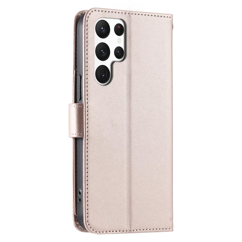 For Samsung Galaxy S22 Ultra 5G Ring Buckle Rhombic Leather Phone Case(Rose Gold)