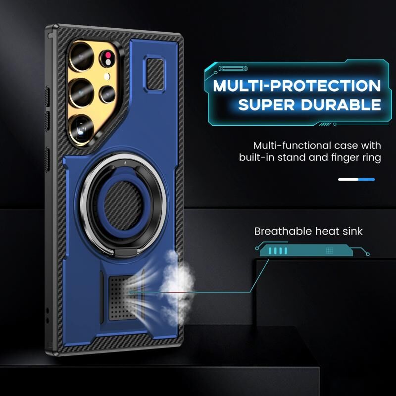 Για Samsung Galaxy S22 Ultra 5G Ring Holder Carbon Fiber PC υβριδικό TPU τηλέφωνο υπόθεση (μπλε)