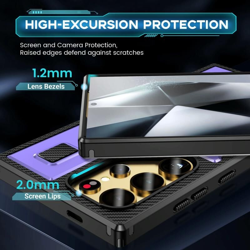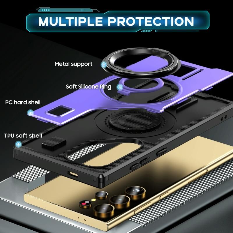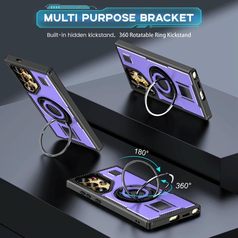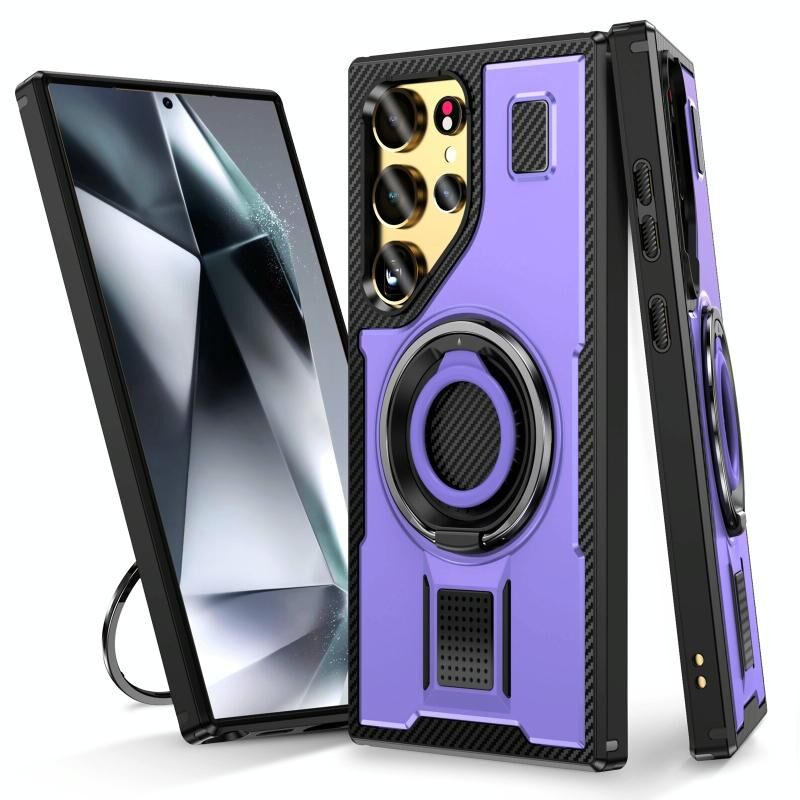Για Samsung Galaxy S22 Ultra 5G Ring Holder Carbon Fiber PC Hybrid TPU τηλέφωνο υπόθεση (μωβ)